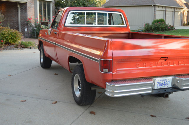 For starters this truck has been in my family since 1977 when it was purchased from my great grandfather, the only reason i'm selling it is because i'm joining the air force and don't want it to sit. This truck is in excellent condition and has the original factory color paint, interior is all original and in excellent condition as well, this truck runs and drives as well as it looks, I want it to go to someone who will appreciate it and take care of it like it deserves. This truck would make a perfect first truck, work vehicle, daily driver, show car and anything one might think up. The only thing changed in this vehicle is the 350 chevy swapped in place of the original inline six which was done by my grandfather to gain power steering which wasn't available with the straight six. The truck has less than 31,500 miles on the chassis and less on the 350. If you have any questions about my truck you can contact me at 785-six33-4four62