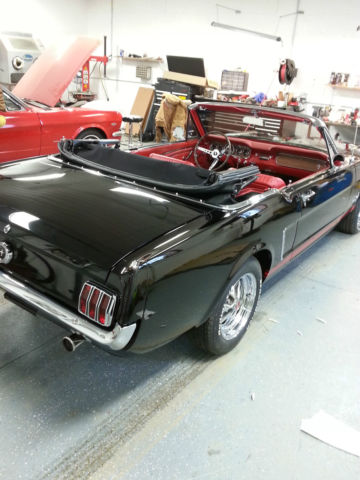 You are bidding on a Brand New 1965 Ford Mustang Convertible, this car has just had a complete rotissorie restoration with every nut, bolt and washer cleaned, tested and or replaced. This car has also had new Fog Lights, Dual Trumpet exhaust, and Bright red stripes installed. The 289 engine has been meticulously rebuilt to all Ford specifications as well as the Toploader 4 Speed transmission and rear end. Has new heavy duty clutch installed as well as all new brakes. This has a brand new top, carpet and Pony Interior installed with all new upholstery, seat buns and canvass backing installed. This car has the original working AM radio and power top. THIS CAR IS BETTER THAN NEW, IT REALLY IS THAT NICE. Anyone would be proud to own this car. These cars are appreciating in value every year, they really make a great investment. The following information is provided. Thanks and good luck bidding. Year: 1965 Body: 76B Convertible Pony Interior Plant: San Jose Color: A Raven Black Body: 08 Convertible Trim: 25 REd Crinkle Vynle Engine: C 289 2V Date: 04L Nov 4th 1964 Unit: 150808 DSO: 72 San Jose Axle: 6 2.80:1 Conventional Trans: 5 4 Speed Manual