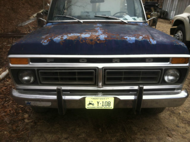 This 1976 Ford F-150 2 wheel drive 360 big block automatic. Runs and drives excellent, original all the way except wheels. I have owed for nearly a year, it came from Arizona and is almost completely rust free. Inside bed is excellent, no dents just paint, tailgate is perfect. AC works, heater works, seats don't look like it's ever been sit in. List of new parts include: 4 new tires, brakes, master cylinder, booster, rotors, and calipers, drum shoes and wheel cylinders. New dual exhaust, new carburetor, brain box, aluminum radiator, power steering pump and brand new battery (is not even a month old). Everything on this truck works except gas gauge. I just don't have time to finish it, moving on to new project. Clear KY title. I have over $5000.00 invested. 2nd pic shows damage to front bed side, cab corner, and door, due to being side swiped by a car. Door still opens and closes fine. This truck is 95% rust free, 3 little spots of rust. IT IS NOT JUNK!!! I am willing to trade on jeep or tractor loader. This is for sale locally and I reserve the right to end the auction early. Please feel free to contact me with any questions you may have, Todd @ (606) 210-1736, or via email.