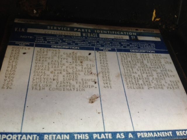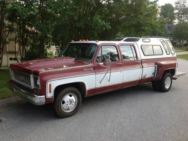 I have a CLEAR GEORGIA TITLE in hand. Selling my 1974 Chevy Cheyenne Super C-30 Dually. This is an original truck. Take a look at the options list in the glove box, this is one of the highest optioned trucks I have ever seen. It is a special ordered truck and I can assure you that you will not find another like it. All original paint other than the hood. 10,000 GVW Camper Special truck. 3+3 Crew Cab. It is a real attention getter. It has PS, PB, cold AC, Tilt, Cheyenne interior, all the Gauges, special HD OEM transmission. I had a new master cylinder, brakes, 4 newer tires, tune up and motor detailed. Fenders and bottom of the doors have surface rust. Front fender has a few rust splits. -73k original miles -Camper Special -Original 454 Big Block -1 Ton dually Original Options: -Soft Ray Glass -Camper Mirrors -4.10 Rear Axle -Aux fuel tank -Dual Rear Wheel -Cheyenne Super Equipment -Custom Vinyl Trim -Deluxe Camper Equipment -Trim Combination -Sliding Rear Window -Folding Seat back -Air Conditioning -Fleetside Pickup Box -Engine Oil Cooler -Turbo Hydro-matic -Tilt Steering Wheel -Aux 61 Amp Battery -California Emissions Equipment -Deluxe 2-Tone Paint There are a few others, but I just highlighted the main options. Refer to picture of Glove Box Door Picture for others. The only 2 things added to this truck are the cowl hood (which is steel) and a custom rear bumper. I have all the paper work from when it was new and a LOG BOOK of mileage to prove the miles are accurate. I drive this truck once to twice a week and it has never let me down. It drives like a new truck. You will be very impressed with this truck. For more pictures or details call Don 404-451-7450