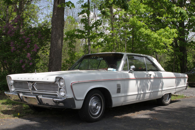 Rare Lovely 1966 Plymouth Fury III, 318 Wide block V-8 with Torqueflight trnsmission - white exterior with chrome trim accented by a red stripe. I've owned, maintained and enjoyed this car for 5 years, and she is looking for a new home! The interior is deep red (car does need new carpets) with tuck and roll deep red and black vinyl seats which are in perfect like new condition! Headliner in very good condition, no major tears or holes in it. Small crack in the dash by the speaker. Does not have the original stereo (it's a Craig that came with the car when I bought it) The only signs of rust are 2 small dime sized spots on both the left and right rear wheel wells/fenders. Has the matching rear fender skirts. Upgrades include: Front disk brakes by SSBC (Buffalo NY), addition of a dual master cylinder new read drums (car was original with drum brakes all around and the single master cylinder, so for safety in driving to car shows, this upgrade was a must, will save you the trouble of worrying about the stopping power of the car.) Replaced all four shocks with Monroe Sensa-tracks. New tires all around in August 2011 - Whitewall stripe Majestic A/S brand. Added a discrete electronic starter so she starts better when cold. Has the 1966 Shop Manual from Plymouth (the real book, not a digital copy) Built at Dodge Main (Hamtramck-Detroit) Have records from myself and previous owner (car came from PA)