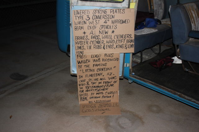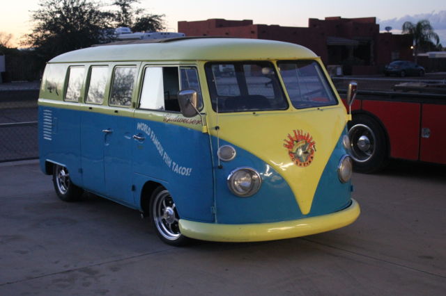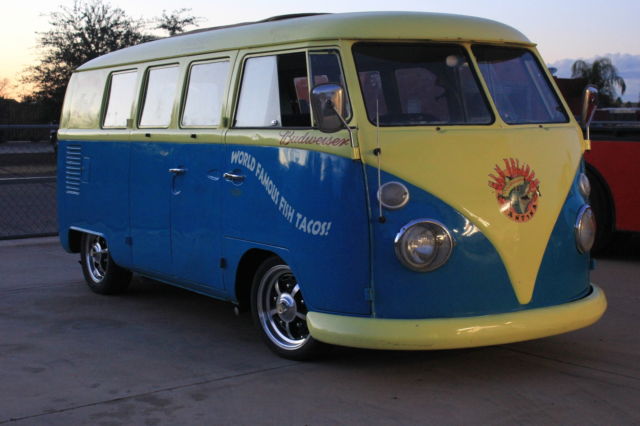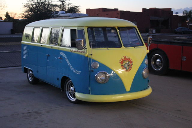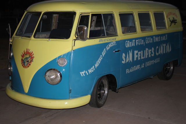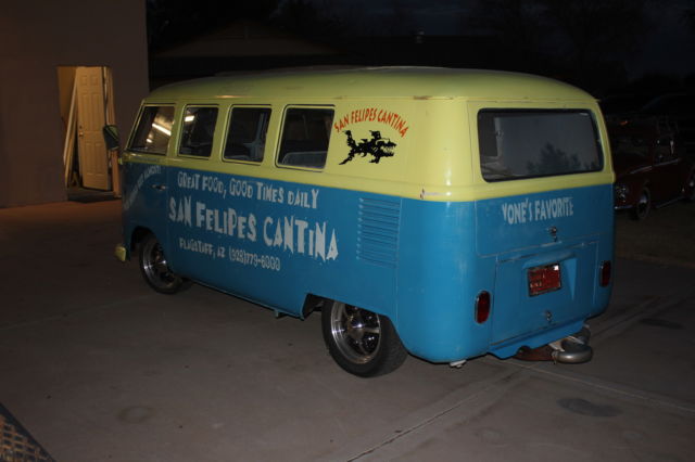 1965 VW BUS Delux Walk Thru Combi, this bus has great patina, was used for over 25 years in Phoenix as a logo bus for the famous Latina Cantina restaurant/bar/night club, was even a DJ booth at one time. it was purchased and brought back to life over the last few years, it has a 2276cc stroker motor, forged counter weighted crank, race rods, lightened flywheel, FK8 cam, kenedy clutch, big valve 40x37.5 race heads ported and polished by CE, dual 44 Weber match ported manifolds, 1 5/8 merged header and Stainless muffler. it has a Az transaxle built trans, with H.D. side plates, 4.12 Ring and Pinion, welded 3rd and fourth, Super Diff, swayaway Axles. to lower the rear of the bus we used type 3 axle tubes and big drum brakes, lowered spring plates, new shocks. The front end is all new as well, narrowed Wagen West adjustable beam, drop spindles all new tie rods and ends, new shocks. All new brakes, hardware, lines, master cylinder, all wheel cylinders and turned drums. new shift coupler and bushings. The bus rolls on replica Sprint Stars and smart car low profile tires, handle great! The bus does have rust in the left front corner of the cargo floor and some pitting and pin holes , there is some bubbles in the in the paint on the right rocker., the paint is over 25 years old, needs restoration finished. No rust in any of the braces or surrounding areas. sliding rag top, all lights work. The interior does need to be redone. It has a 1968 middle and rear seat. I also have the rear bumper for it, currently not on because it hits the merged header. Very fun to drive and gets looks everywhere you go. LESS then 900 miles on Engine, Trans, and complete front and rear brakes/suspension. that's right less then 900 mile on complete drive train rebuild!!!! over 9000.00 spent on drive train rebuild alone. Been in to VWs 28 years I know what they are worth. NO TRADES good luck bidding I have the bus listed locally and reserve the right to end the auction at any time! Key Words:1957,1958,1959,1960,1961,1962,1963,1964,1965,1966,1967,1968,Volkswagen,VW,Bus,Bug,Type 2,Lowrider,hotrod,rat rod, patina