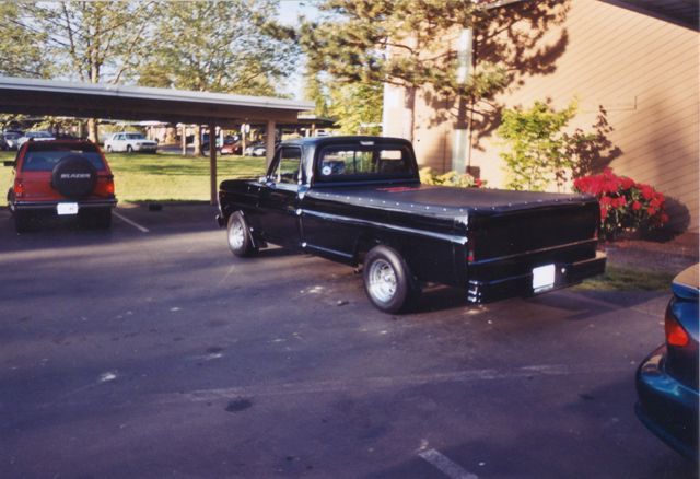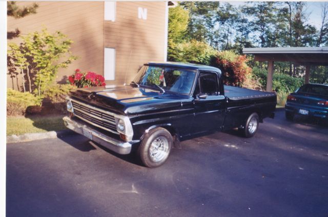 This is a mostly original standard F-100 with some key modifications to improve comfort and performance. There is minimal rust: some rust around the battery box, but that's it. The chassis features a twin I-beam front suspension, complete with radius arms bushings. The engine features the FE block, with higher-compression ratio. Horsepower, from the factory, was 215 horsepower; but is now higher, due to better exhaust flow due to Glass Pak mufflers. The engine is backed up by a dependable and durable C4 automatic transmission. All mechanicals are good and sound, save for the engine which has bad connecting rod bearings. The interior is a custom upholstered cabin with diamond tuck vinyl with cloth inserts and bucket seats. Relative to that are "shaved" door handles, actuated by push buttons; inoperable at this time for reasons unknown to seller. The original aluminum side trim goes with the sale. The paint is still glossy and in very good condition. A battery "trickle" charger goes with the sale. Please note, that the seller has lost the ignition key; however, that is easily replaced. If either you or a friend desire to see this truck in person, the owner asks that you call (425) 922-0483, in order to set a time.