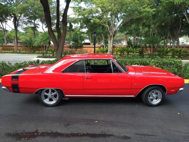 1969 DODGE DART GTS ORIGINAL 340 4 SPEED CAR BUCKET SEATS AND CONSOLE TACH!! THIS CAR HAS HAS A MINT CONDITION INTERIOR ALL THE WAY AROUND! THERE ARE STAGGERED CRAGAR SS WHEELS. REAR HAS 245/45/R17 WITH HOOSIER DRAG RADIALS WITH ABOUT 75 PERCENT TREAD AND THE FRONT 235/60/R15. THE MOTOR IS A MOPAR PERFORMANCE 408 STROKER 500 HP, CURRENTLY ABOUT 540 HP. THE MOTOR HAS AROUND 2000 MILES ON IT AS WELL AS THE REBUILT 833 4 SPEED TRANSMISSION. NEW CENTERFORCE CLUTCH, PRESSURE PLATE AND THROW OUT BEARING WITH ABOUT 50 MILES AS WELL AS HURST SUPER SHIFTER. TAYLOR 409 WIRES, MSD 6AL DIGITAL IGNITION WITH TWO STEP AND HURST ROLL CONTROL. CERAMIC COATED HEADERS WITH DYNOMAX BULLET RACE MUFFLERS, HOLLEY CARB 850CFM ON TOP OF A MOPAR PERFORMANCE ALUMINUM HIGH RISE INTAKE. THIS CAR IS SUPER CLEAN FAST AND FUN TO DRIVE RUNS PERFECT!! IT HAS ALWAYS BEEN GARAGE KEPT AND ADULT DRIVEN. YES THERE ARE MY RACE TRACK NUMBERS ON THE CAR THIS CAR HAS NEVER BEEN TO THE TRACK EVER OR ABUSED!! IT IS JUST FOR LOOKS!!! THIS CAR COMES WITH THE ORIGINAL CENTER CONSOLE AND SHIFTER, CENTER CONSOLE TACHOMETER AND EXHAUST TIPS!!! ANY QUESTIONS PLEASE CALL JEFF 561 400 4899 THIS CAR IS ALSO BEING ADVERTISED LOCALLY SO AT ANY TIME WE RESERVE THE RIGHT TO END THIS AUCTION. I WORK, SO IF YOU CALL ME AND I DON'T ANSWER, PLEASE TEXT ME OR LEAVE A VOICEMAIL. On Jan-02-15 at 18:20:46 PST, seller added the following information: Moser 31 spline axles. 8 3/4 rear end positraction with 4.10 gears.