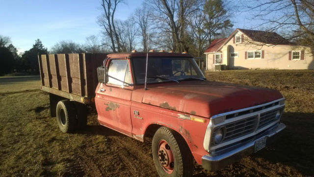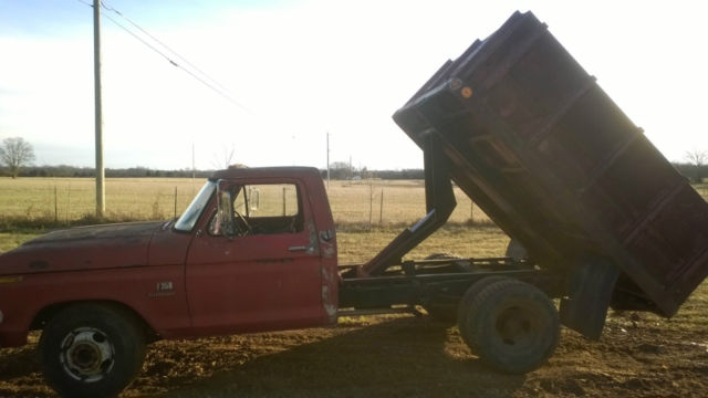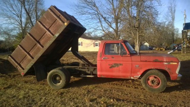 I have a 1973 Ford F350 dump truck for sale, 360 engine with granny low 4 speed trans, PS and Power front disc brakes. Truck starts and runs good, the bed works good. This would be a perfect farm truck. I use the truck on my property hauling wood, rocks, dirt and gravel. It has a metal floor in the bed, all four sides to a grain bed and 2 extra wheels and tires. I have converted it to electronic ignition, goose neck, brake box, no hydraulic leaks, just a few drips of oil and a regular bumper hitch. I am not trying to sugar coat it at all, the truck is rough but very functional. Here is the list of issues that it has:t he cab and fenders have rust holes in them, the floor has small rust holes in it, it needs radius arm bushings on the driver side, doughnut gaskets on both sides, the PTO cable operates but is stiff, puffs a little smoke when started, some of the bed lights need wiring and the inner door handles dont work. It functions perfect for the jobs that i use it for. I didnt check the mileage on this because its insignificant. I am only trying to sell because I have too many trucks if I sell one of my others first I will keep this one. I hydraulic dump system cost what im asking for the truck alone. Call with any questions 9312056463 steven