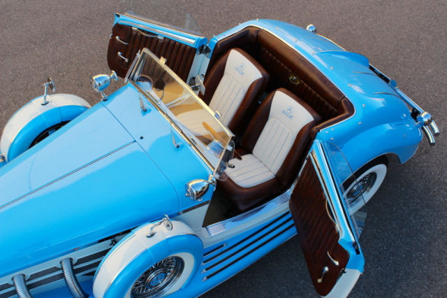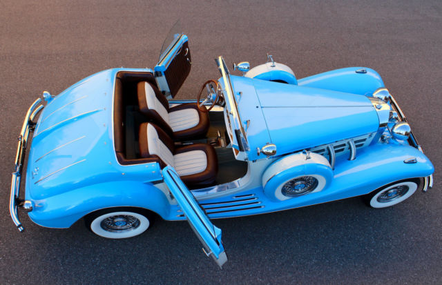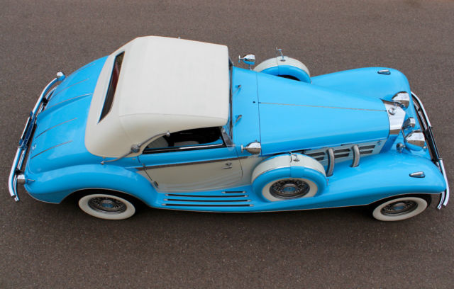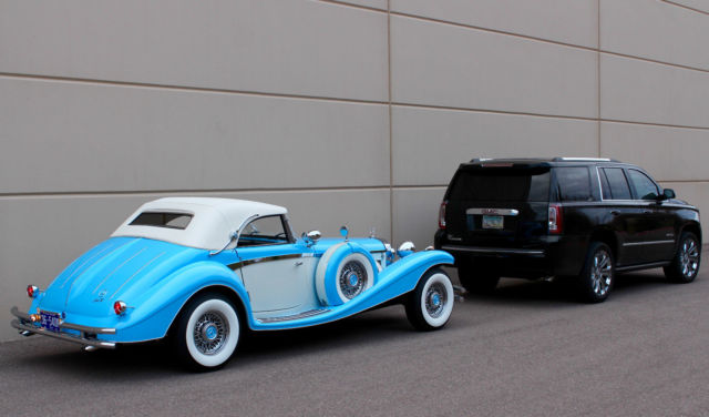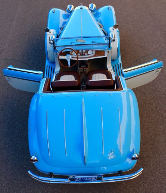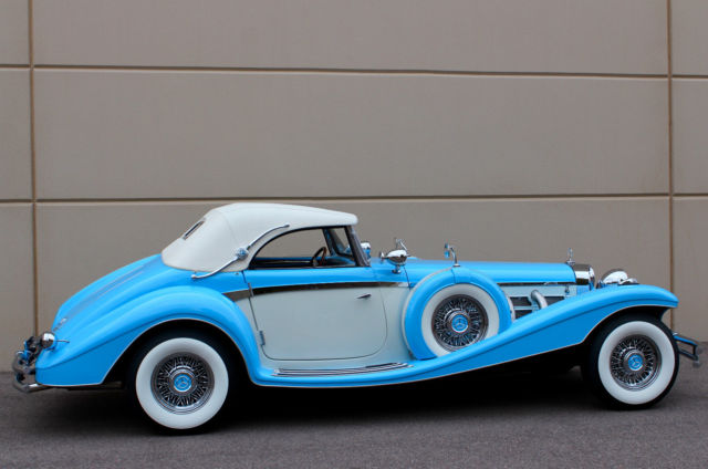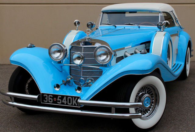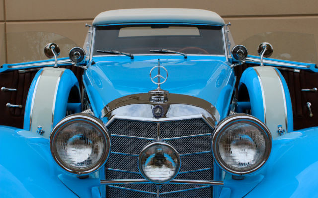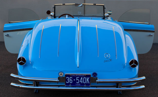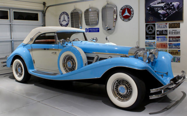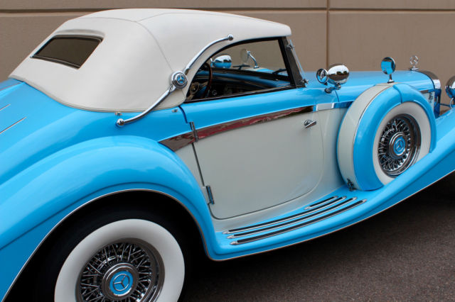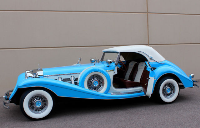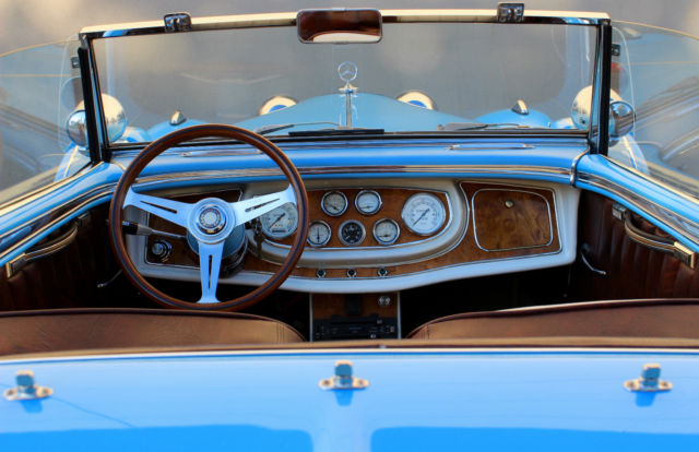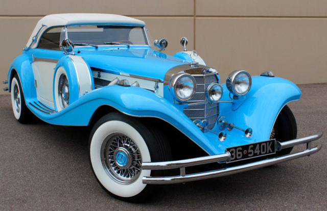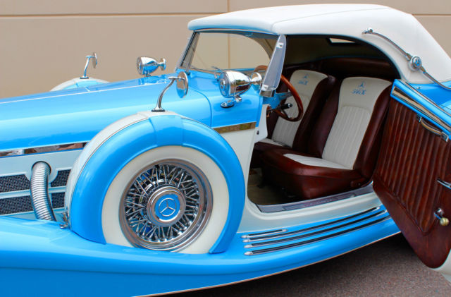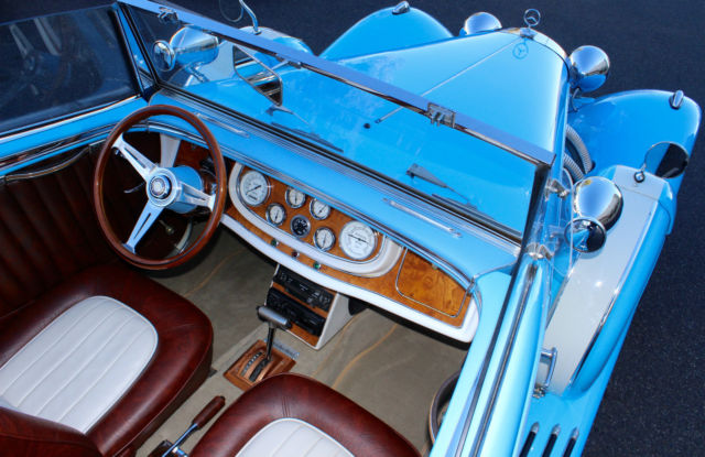 Once the car was completed, he named it "Hilda" and it was his love and pride for more than 30 years...He moved in California long time ago, so, this a California titled car and is considered antique, no smog required to be registered. This is the more authentic looking to the multimillion dollar original Mercedes 540K and the more sought after Mercedes Replica out there, 16 Feet long, 3800 pounds. Car has been restored in 2015, $ 8000.00 New paint, 2 tone scheme, light blue and Ivory, New interior, New 2 tone seats with light blue embroidery to match the exterior color, New carpet, 6 new Wide Withe Wall Classic tires...and a lot of other new things on this rare and super customized Mercedes Recreation, please pay attention to details, they will confirm that this is a rare car indeed and also the buyer spent a lot of money and time to build such a beautiful car. The donor car to built this replica was a Ford Mustang II, the engine is a 5L 302 V8 Ford Mustang, very powerful and in good working order, C4 automatic transmission, Power steering, Power Brakes, 2 pice hood, center spot light, twin trumpet horn, supercharged side pipes, dummy cowl lamps with mirrors, 6 real wire wheels, 2 spare with covers left & right, painted 2 tones to match the body paint job, Woodgrain dash and expensive Nardi Italian Steering wheel, Chrome door and dash inserts, suicide thick doors & roll up windows, hard top convertible with Landau Bars, locking gas door, working lights, working horn, working wipers....working vehicle, does have a heater but no ac. Car comes with a lot of documentation and clear Title. Please check the pictures, they will prove that this is not your average Kitcar but a very rare and nice customized Mercedes recreation for the guy that cannot afford the real deal.....Highly collectible and draws much more attention than a Lamborghini or a Ferrari . Vehicle is located in Phoenix metro, inspections are welcomed before auction ends, car will be sold on as is where is basis, buyer being responsible for shipping. No trades at this time, thanks. Good luck bidding on this super rare car !!!