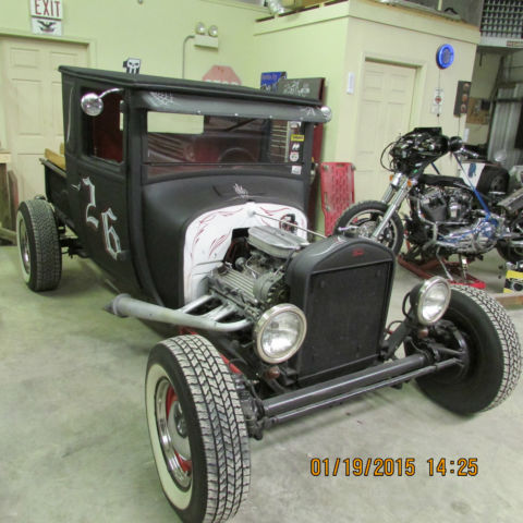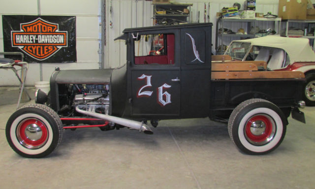 1926 Ford Model T Rat Truck- - Clean Title, Fatman Chassis, Steel body that has been lengthened for more room, rebuilt 350 with clay smith cam, new powerglide, new interior, new roof cover, new Coker wide whites, just lettered and striped, new wheels, new transmission cooler, origional tool box in bed, 3.73 gear, disk brakes. We didnt built the truck but its a fairly fresh build. Now it is a ratrod the bodywork isn't perfect and it doesn't drive like a new car. The under dash gauges need to be moved into the dash because the dash gauges other than speedo doesn't work, it needs two door glasses (there there but there plexi and hard to see through), and needs 1 window channel that connects to glass to complete the roller set up so the window rollers can be installed and working properly. Other than that all lights, turn signals, gauges, ect. work properly. Basically new front to back 2800 stall, big cam, Dual line Holley, and she shakes the ground when you fire it up. Also have hood. Very very strong runner drive anywhere! Vids Of Truck For Your Viewing Pleasure- http://youtu.be/nekp_SUPwGw http://youtu.be/fNvCbf4ZvRI