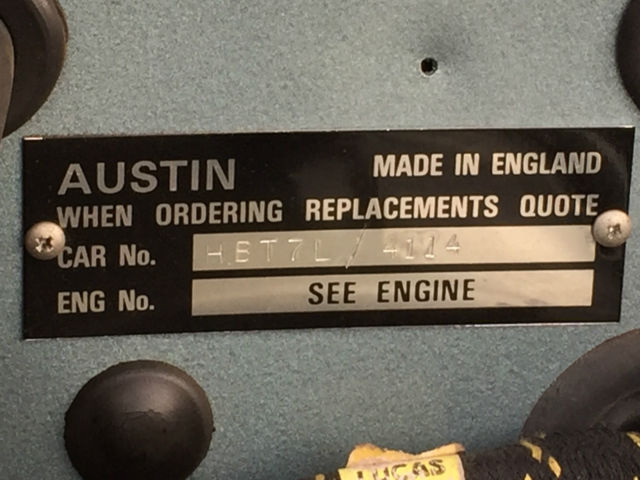 | VIN (Vehicle Identification Number): | H-BT7-L/4114 | Year: | 1960 |