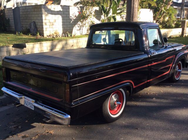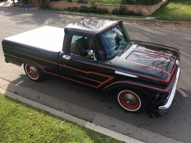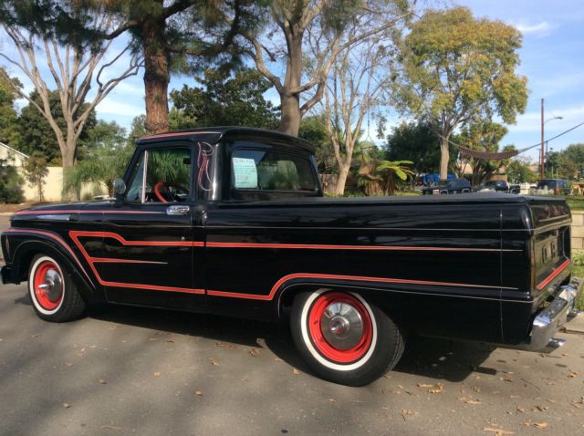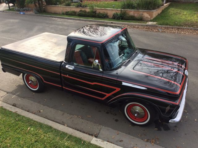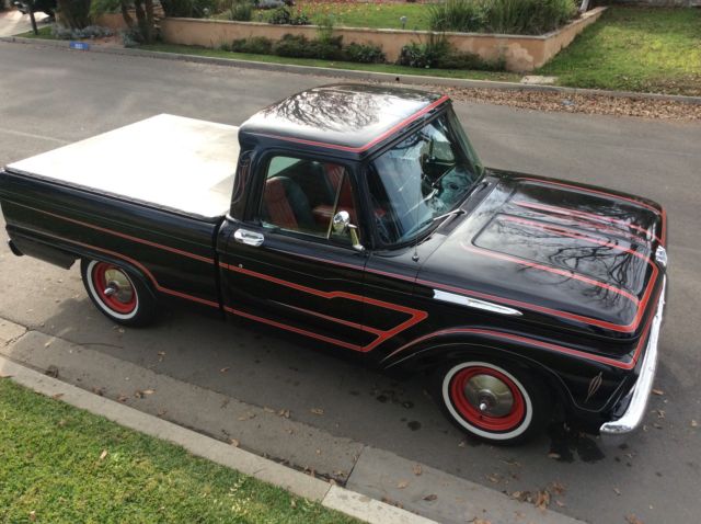 1964 Ford F100 Hot Rod Truck The Truck has been heavily modified and is a great driver with many options, also very dependable. It's been fitted with a 302 EFI HO Ford V8 and a AOD Overdrive automatic transmission. The front suspension has been replaced with a Mustang 2 independent system, it has power steering and disc brakes. The rear suspension is a 9" housing with 3:50 gears. The car stops and steers great and goes easy 75 Miles on the Freeway. The interior is done with nice Bucket Seats and a console. There's a tilt steering column, VDO gauges, heat and air. Overall the car is a great driver with plenty of power to spare. The body is solid but the paint has a few dings here and there, take a look at the pics. Overall it presents well. Please ask all questions before you make an offer as you are entering into a legally binding contract. All shipping charges are the buyers responsibility. We welcome international bidder and we will deliver to the freight forwarder of your choice in the Los Angeles area Vehicle is located in Costa Mesa California (Southern California).