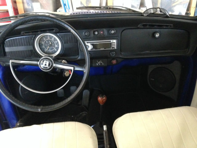 Overall Condition and history: Purchased in 2000 and had it professionally restored for my father's 70th birthday. Original mileage at purchase 108k. 12k miles since restoration. Unfortunately he can no longer drive it and I have run out of garage space. We had a VW specialist (from Germany) do the restoration which took almost one year. Every panel repaired or replaced. New floor pans. New 1600cc engine. Very original except for aftermarket radio and speakers. When completed it was a show car. The past 15 years it has seen minimal use/ has always garaged and babied. Driven fewer than 1000k miles/ year. Now I would classify it as a beautiful driver car. Exterior- Brilliant blue paint shines. A few small scratches- touched up. Convertible top excellent. No rust on any of the frame, floor pans, panels, or bumpers. The running boards do show some oxidation and light surface rust at the edges. This could be polished out or easily replaced- inexpensive bolt on part. Pictures highlight this detail. Interior- White seats in very good condition, no rips. Carpets clean. All instruments work, including interior light! Later model 3 point seat belts added in front. Aftermarket radio and footwell speakers. Mechanical- New engine in 2000- runs perfectly. Strong and so much fun to drive. Does leak a little oil- i think it's from a push-rod tube. Brakes perfect and just serviced. Last 4 pictures show the restoration process including new floor pans and engine. I would encourage prospective buyers to come and see the car in person. I am happy to coordinate.