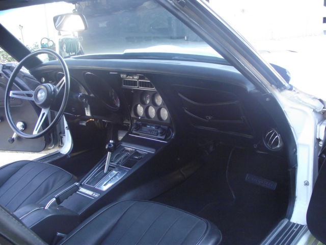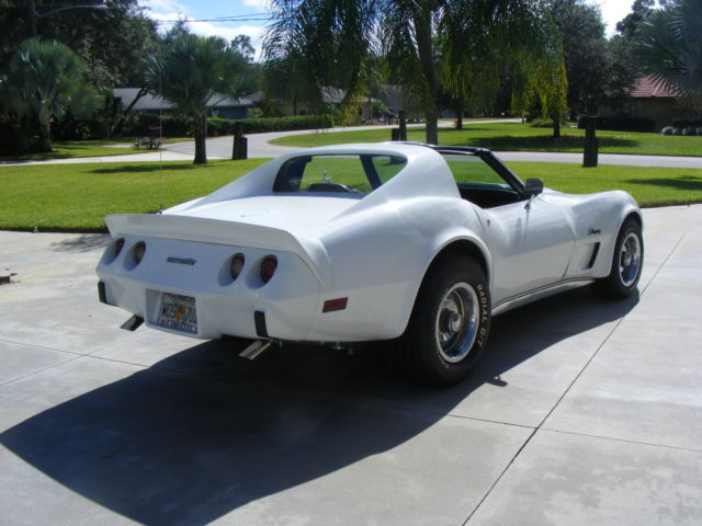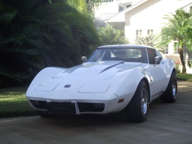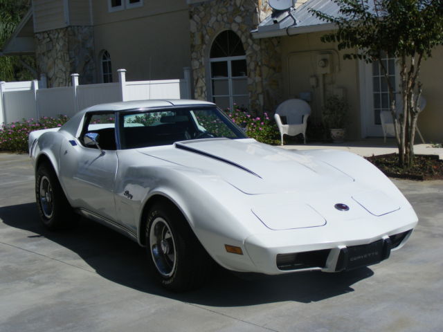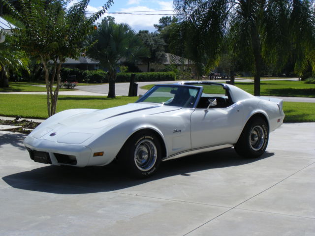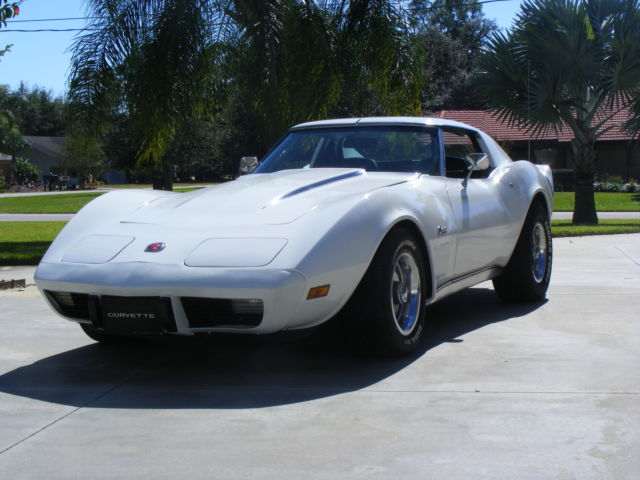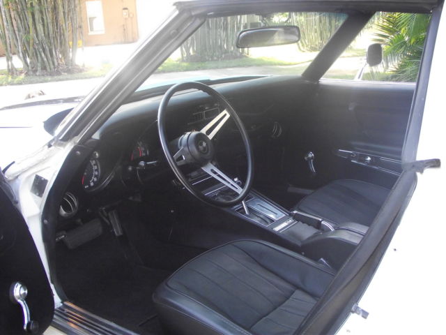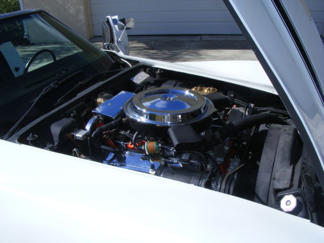 Engine : Original L48 (350 ci / 195 hp) When purchased, the car odometer was at approximately 93K. It is the original "numbers matching" engine for this car. The interior, brake/gas pedals and overall condition would indicate that was the correct mileage. Nothing visible about the engine that would indicate the motor had ever been pulled. It now has 108k miles on it. The carburetor was not the original Quadrajet, but a re-man Quadrajet. A new Edelbrock 650 cfm (replacement for the stock factory Quadrajet) with the electric choke was installed and no cold starting issues since then. The original "points" style distributor was replaced with an electronic distributor that looks just like the stock version but works a whole lot better. The old one is still on the shelf if you want to put it back "original". Transmission: The transmission is the original Turbo 400 and was rebuilt about 6 years ago (would not go into "Reverse"). Less than 5k miles since then. Transmission fluid/filter was changed last month. Factory options include : Tilt/telescopic with power steering, disc brakes and air conditioning. (A/C compressor was replaced last year) Exterior : Repainted to factory original “Arctic White” in 1994. Always garaged since then and seldom sees the rain. Upgraded the old exhaust system to a "chambered" system that provides that 60's-'70s V8 rumble of that era (adds about 25hp also). These are real "duals" - no "Y" pipes. These will not wake your neighbors, but they’ll know you’re in the area. Head light assemblies work with no vacuum leaks. Corvette Rally Wheels with new Cooper RWL tires (