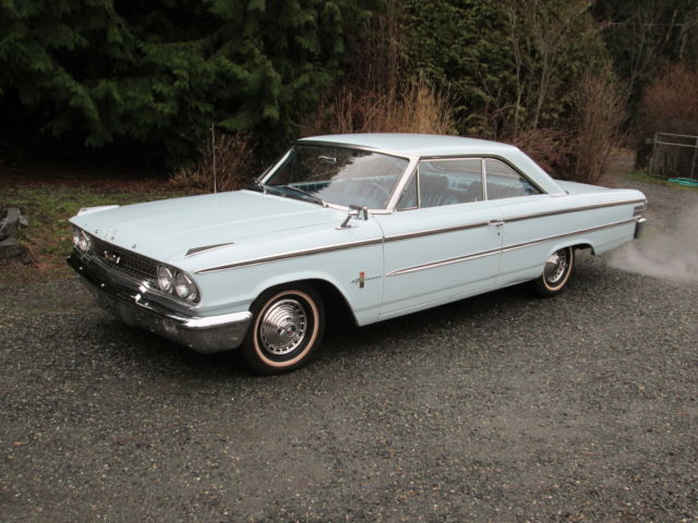 1963 1/2 Ford Galaxie 500 XL Fastback in Glacier Blue with Blue interior, 352 big block, 3 speed auto. All original unmolested 70,000 mile car. I am the third owner. Bought new in Seattle. This is a superb example of this iconic car. The engine and trans were rebuilt at 61,000 miles and are completely stock even down to the original type hoses. There is no rust anywhere on this car. The last owner ( grandson of the original owner ) said he hadn't out in the rain since he bought it in 1991. The car was babied and neither he or his grandfather wanted to paint the car in the damaged areas. Choosing to leave the car all original. The interior is totally original and in excellent condition. The trunk mat is original and shows some wear, the cardboard side panels are in great shape. I put new tires on last week and elected to put the blackwall out. There is a picture of the car with whitewalls if that's your preference. This car is ready to go, it runs and drives great. If you have any questions, would like to see the car in person or need to see more pictures please contact me. Paul 360-632-1016 or by email