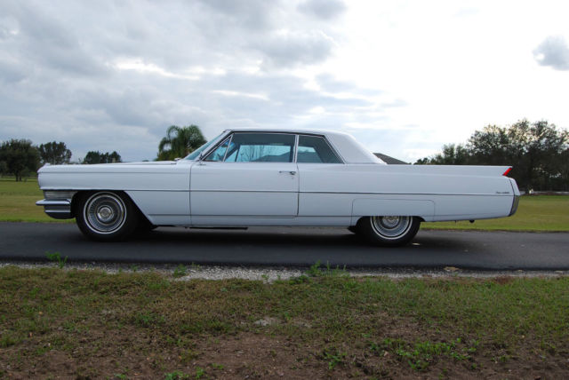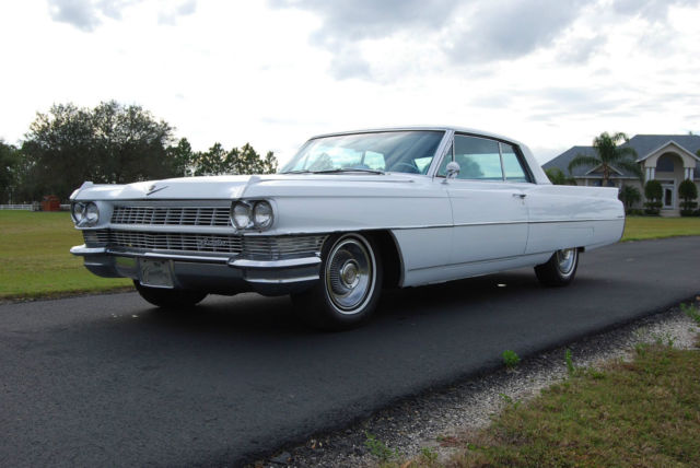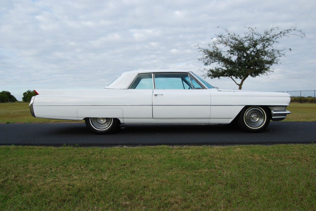 I have a 1964 CADILLAC COUPE DE VILLE 2door for sale, car show 92,000 on the odometer but is exempt on mileage due to age . The car has a 429 V8, ice cold air conditioning, power sterring, power brakes, all the power windows and seats work. The radio still works. Original interior in very good shape was repainted approx. 3 years ago and looks great. The car is orignially from Califorina and doesn't have rust problems. The best way to describe this car is it's a nice old car that has not been molested and is a driveable classic..............a real piece of history.............a steal at $14,650 OBO Excert from Wikipedia on the CADILLAC COUPE DE VILLE It was time for another facelift in 1964 and really a minor one. New up front was a bi-angular grille that formed a V-shape along both its vertical and horizontal planes. The main horizontal grille bar was now carried around the body sides. Outer grille extension panels again housed the parking and cornering lamps. It was the 17th consecutive year for the Cadillac tailfins with a new fine-blade design carrying on the tradition. Performance improvements including a larger V-8 were the dominant changes for the model run. Equipment features were same as in 1963 for the most part. Comfort Control, a completely automatic heating and air conditioning system controlled by a dial thermostat on the instrument panel, was introduced as an industry first. The engine was bumped to 429 cu in (7 l), with 340 hp (253.5 kW) available. Performance gains from the new engine showed best in the lower range, at 20 to 50 mph traffic driving speeds. A new technical feature was the Turbo-Hydramatic transmission, also used in the Eldorado and the Sixty Special. A De Ville script above the lower belt molding was continued as an identifier. This was the first year for the De Ville convertible. De Ville sales reached 110,379 units, accounting for nearly two thirds of all Cadillacs sold.