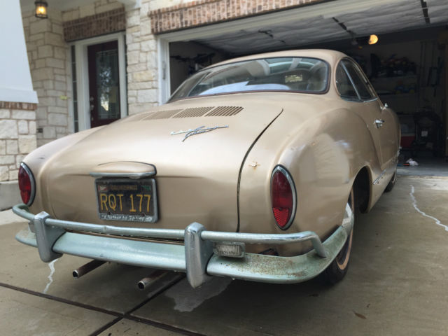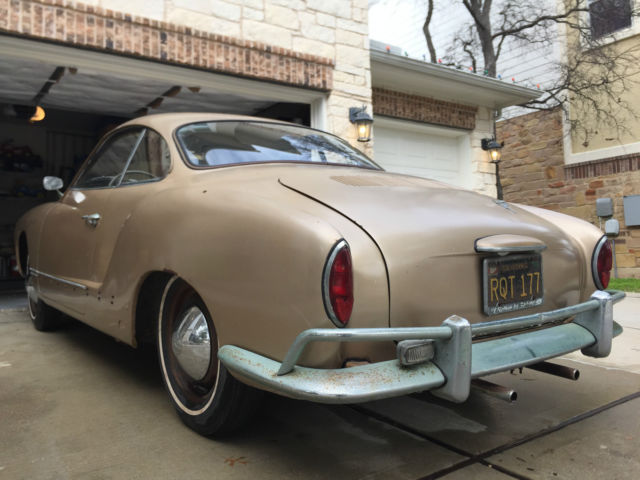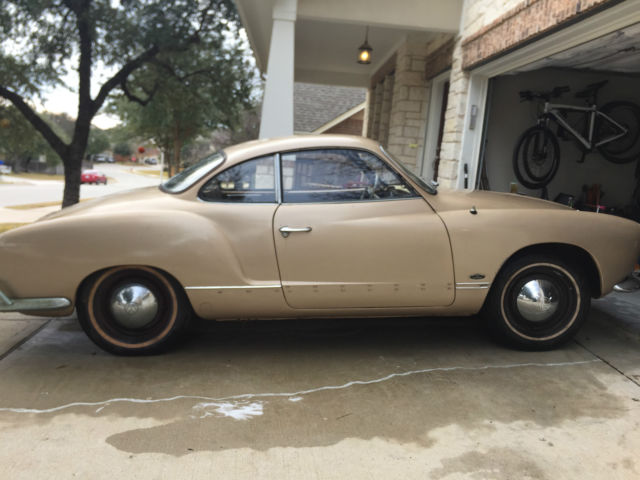 Rescued this ghia from an Estate sale and a buyer who was going to cut it up and make a mid engine race car......stupid. Car hasn't seen the road since 1978 as per the registration stickers from California from it's original owner. Miles on odometer are correct I believe since it's been in a garage for 20+ years. They would occasionally start it up and spin it around the block but it still has it's original bias ply tires so it wasn't trusted on the road much. Great car for restoration or leave it as is and drive it. Car has 3-4 faults. Was repainted in the 70's to the gold color at a body shop in California where everything was taken off so all panels are painted inside and out except for the trunk area where wiring is. Drivers window doesn't roll all the way up and the hinges are saggy on drivers door. The dash pad got brittle over the years and one of the kids started peeling it off supposedly so it's missing. Paint is bubbling in a couple spots. Awesome stuff. Has the original wooden dash nobs, interior, headliner and most of the carpet is original. Seats I believe to be original as they show wear but might have been recovered in the 70's. Original to car bumpers, HELLA light rings and SB12 inner rings, Gear shift lock with ultra rare IGNITION/SHIFT LOCK combination that works perfectly now. Has a, I've never seen one before, VW of Canada stamped block as "remanufactured" so not the original 40 block but still a cool piece of history being a reman unit from the factory. Original air cleaner, shroud and all 40 horse tins fit perfect. Car has ZERO rust. Original battery trays are in tact, pans original, nose, rockers etc. Drivers rocker panel has broken tabs away from the seam under drivers door but is still original metal. All wheel wells and areas are rot free and have original undercoat. Wiring is original and intact all wires appear to be factory. Dash light functions and has a rare "LE CHAPERON" radio that was an option at the dealership with all original knobs too. ORIGINAL smoothy steel wheels and hubcaps. ALL ORIGINAL VW WINDOW GLASS is still there and most if not all of the rubber trim is very good and has it's original metal trim as well, indicating it's true mileage and age in a stored garage these past 20+ years. Engine runs well, brakes are soft but rolls good and parking brake works good. Have tons more pictures Located in Austin Texas, will work with a shipping company 512:983:2610