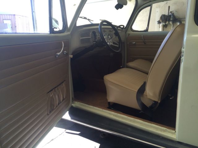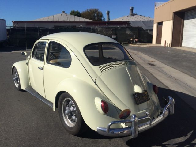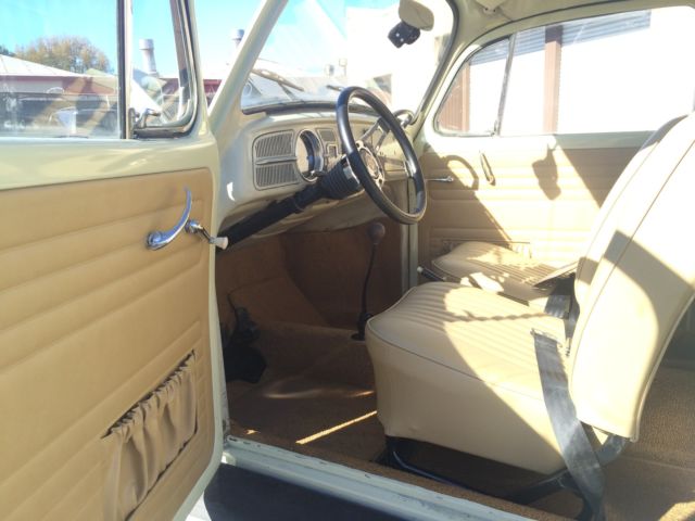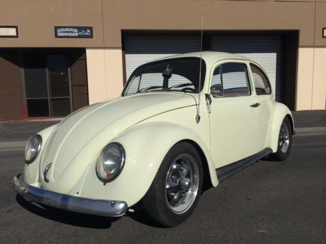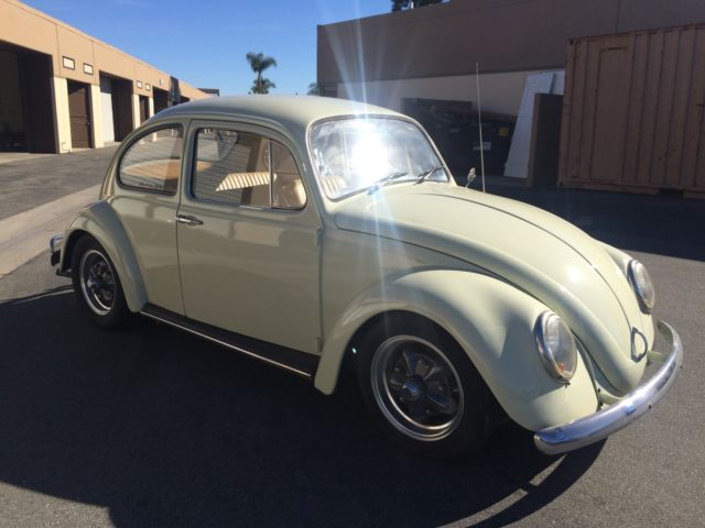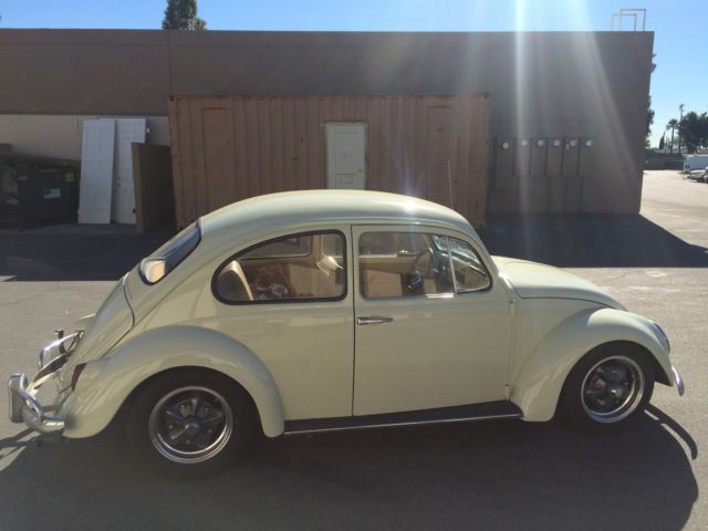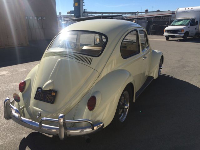 1966 Volkswagen Beetle 1600cc DP motor 12 volt Sexy Build This is a dream VW Bug, its an amazing feeling driving this around, its got very low miles on the build. Its very fast and peppy, handles like a little go cart with these brand new wider tires. Its low but doesn't scrape on these LA speed bumps and rides just a tad firmer then stock. Interior is brand new and still smells new. The interior was redone in saddle color. Works very well and pops with the Off-white exterior. The interior has lots of padding for sound insulation to keep outside noise at a minimum. But you can still hear the throaty exhaust of the 1600cc DP motor. Seats where not only reupholstered but frames where rebuilt and reinforced and tracks redone, to insure proper seat adjustment. And tight fight when sitting or taking a corner. Steering is tight and has sway Bar up front, still is drum brakes but are very tight and sensitive. Throttle is peppy and pulls through in any gear. Engine has got low miles since rebuilt as well as transmission. New Gas tank, Paint, Interior, Rubbers, Tires, wheels. Pan is very clean and solid, no rust or bends at all nor any place on the bug. Holes had been welded shut not bondo so no cracking could appear, through paint.