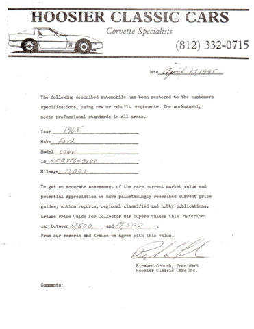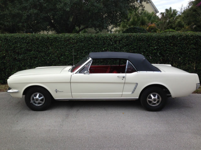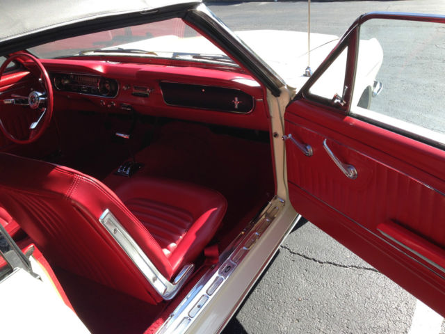 This is a beautiful Mustang that had one obsessive owner from August 1984 until May 2014. The owner commissioned a complete restoration to the original specification in 1995, after which this Mustang was appraised at $19,000. Since then, the car was garaged and used infrequently. The 84-year old owner decided to sell the car last year because he could no longer enjoy it. This Mustang was built in Dearborn, MI on April 20, 1965, with the 200ci six cylinder, C4 automatic, and 2.83:1 axle. It was delivered through Ford's Cincinnati District Sales Office. When it was restored it was repainted in the original Wimbledon White and an all new Red Standard Vinyl interior and black power top was fitted. The restoration was professionally done and the car looks and drives exactly like the original. The body is straight and completely solid with absolutely no rust anywhere. This Mustang is perfect for someone who wants a very solid and mechanically sound Mustang to drive and enjoy. It truly needs nothing other than routine maintenance and should provide many years of trouble-free driving to the new owner.