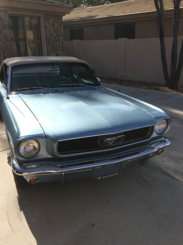 Very nice, clean Arizona 1966 Ford Mustang Convertible with 80500 miles on it. Car has a decent top with wire hub caps that are old and a little scratched. The paint is good with some minor rubs and surface scratches. Car is very original but need some rubber bushings and stripping due to our warm summers. Needs a rear window on the top. No rust. Many original parts. Has had recent brake and carburetor work. The car runs great but I don't use it enough and we are downsizing and won't have a garage for the Mustang. I bought the car in California in late 1992 and I've owned it since. It has been garaged since 1992. Previously owned by a older couple in Bay Area California. The car is located in Phoenix area. I'm selling it as it is. I think it would be a good restoration project with some TLC it could be a beauty. I can help with transit but am not responsible for the move. I'll cooperate with your choice of carrier. I would like a $500.00 deposit on PayPal at the end of the auction and the balance by wire or cash. Thanks!