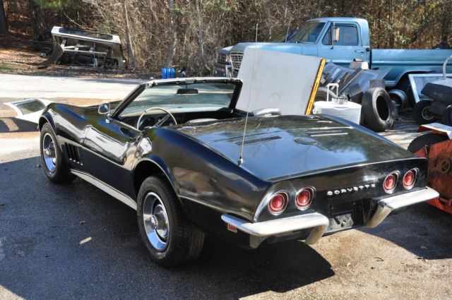 Up for sale is my 1968 Corvette Convertible 327 4 speed. Let me start off by saying the frame is rock solid with no rust and the body is very nice as well. The main reason I bought the car when I did was because of how nice the frame and body were. The engine is a 327 out of a 1965 Corvette. It has been stored in a basement for the last 12 years and hasn't been driven much. The car does run and drive but I currently still looking for the key that I misplaced. If I don't find it, I will put a new ignition switch in it in the next couple of days so we can crank it. This car has the hard top and the soft top which are pretty expensive by themselves. There are lots of parts that go with the car as I bought the car with plans to redo it in the future, but the car has been stored in my dads basement and he needs the space so it has to go. I had the gas tank out of the car to get all of the old fuel out and it is going back in the car. If you are interested feel free to come and see that car or call me with any questions. It will make a great father son project as the body and frame are very very nice. Georgia is a non title state for cars 25 years or older so the car will be sold with a bill of sale and the bill of sale when I bought the car will be included as well. The original vin tag is still mounted but the trim tag is missing. Originals are for sale here on ebay or there are corvette parts places that sale reproductions. Thanks Jeff 706-767-2842 I am relisting due to a non paying bidder from the Netherlands who hit the buy it now and never responded to any emails. I am listing this auction to US buyers only unless you contact me first and have someone in the U.S. Pay for and pick up the car. Thanks Jeff