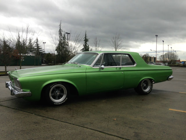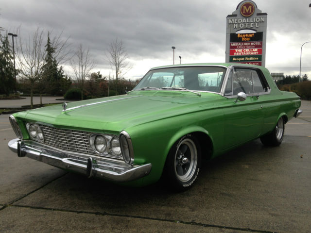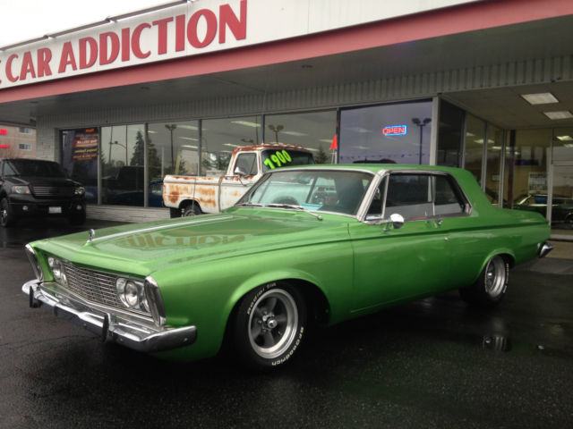 1963 Plymouth fury Push-button Torqueflite, recently installed 360ci engine that was installed Clean and Neat. Paint is a green metallic, quality of paint is better than Average. Nice body lines, Car has virtually no rust visible, On exterior body, undercarriage, floor panels and engine compartment. As seen in video's. Exterior chrome is intact and glass is good. Front windshield has small chip passenger side. Interior is in good shape and finished. Door panels are finished in solid black, carpet, headliner, both front and rear seats. New custom ordered front bucket seats, have factory radio as well, needs proper mounting nuts. No heater. Speedo may not be reading correct speed. Motor looks to be a newer crate 360. Undercarriage is very dry and untouched, engine and transmission are dry. Brakes feel firm and in proper working order. Car drives nice at 55mph, as seen in video. Tires and rims are new along with dual exhaust. These Plymouth's are becoming more Rare and harder to find in workable good shape. Personalizing Or perfecting this fury will just continue to add nothing but value, if done properly. Please verify all information for yourself. I have taken lots of addition photos and videos of car starting driving and undercarriage. I will mention again that this car is a driver and feels safe while driving, even being the year it is. Brian Wilson, Owner classic car addiction 425 931 6448 video pictures http://ccaddiction.com/inventory/?id=cca-v-00032&n=1963