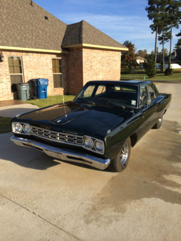 1968 Plymouth Satellite 4 door. Originally a 318 but now has a 360 4 bbl. 64,000 undocumented miles. Since this is not the original motor, I'm not sure what the actual milage is. When I bought the car, I had a few things done. Replaced the passenger floor pan, new forest green paint, new Edelbrock intake manifold, new Edelbrock 650cfm 4 bbl carb, new dual exhaust, new carpet and headliner, new mag 500 wheels, new plugs and wires. The car runs and sounds good. Power steering works well. This is a factory air conditioned car. All AC components are there and the compressor engages but does not blow cold. The interior is in very good condition with new carpet and headliner. The original seat covers are in very good condition. The original dash has two very small cracks. Still has a few things to do to make this a truly cool car to cruise around in. Those items are: Needs new weather stripping on all doors All exterior lights work except the reverse lights All interior lights and gauges work except the fuel gauge (this did work when I bought it but just recently stopped. Needs new sending unit) Engine does have a very small oil leak from around the oil pan. Needs new oil pan gasket installed. I have the new gasket and will include that with the sale. Original radio is in the dash but does not work The AC/heat controls could use some work. The temp control works well but the vent selector is very sluggish and sometimes does not work. The blower motor switch does not work but has been rewired to an auxiliary switch under the dash. To my knowledge those are the only things wrong with the car. Nothing serious. After all, this is close to a 50 year old vehicle. The car recently past inspection and I've driven it on a weekly basis. Usually 50 to 60 miles at a time. No mechanical issues ever noted during these outings. I get looks and thumbs up everywhere I drive it. All serious offers considered. No trades. Serious inquiries only. The buyer is responsible for pick-up or shipping. Car is sold as is. Please message me for more pics if desired.