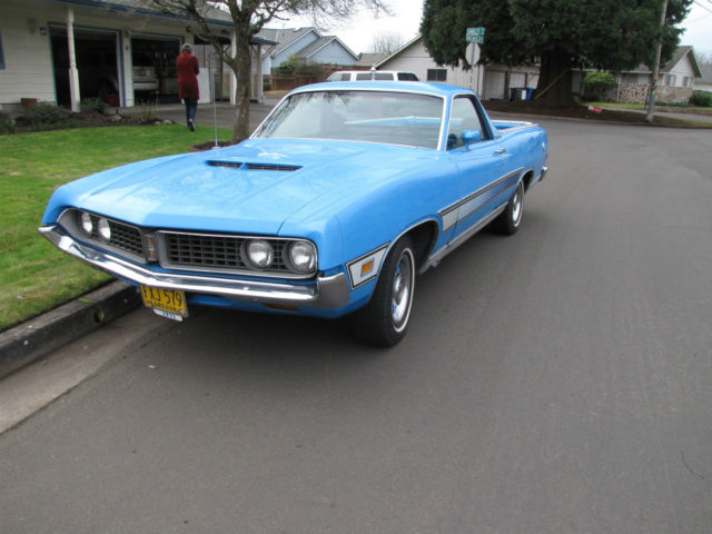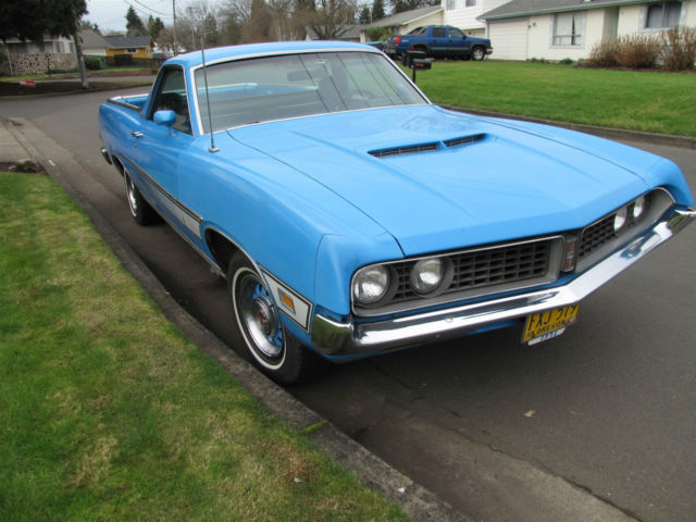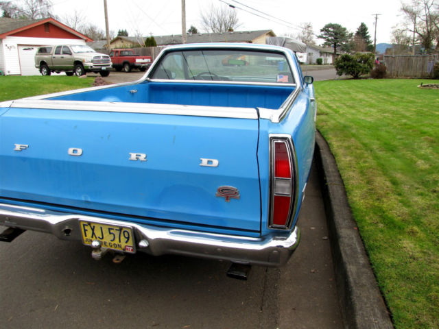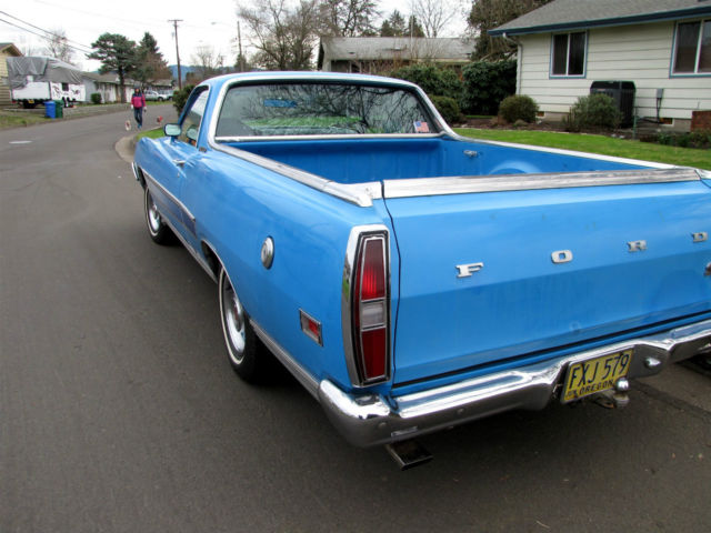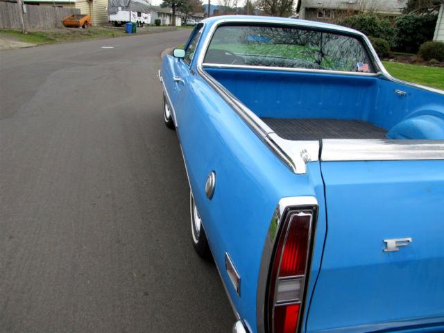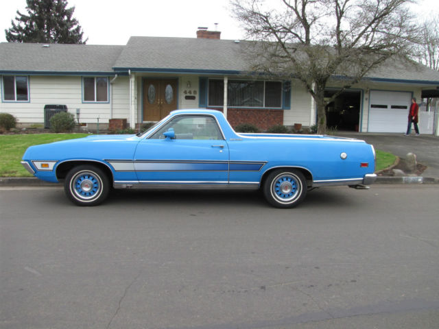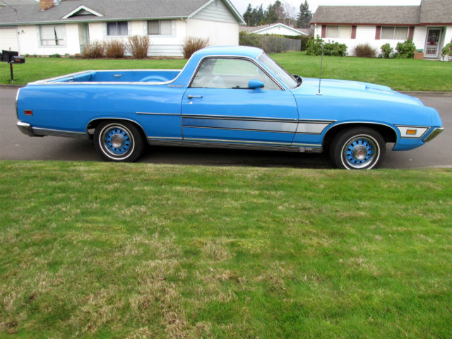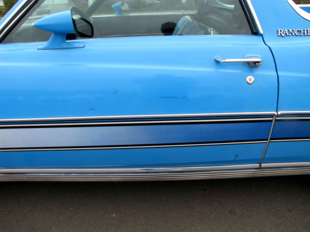I am selling this rare un-molested Ranchero GT for the wife of a fellow car club member who is now on Hospice. They are the third owners and have the information back to the original owner. The odometer show 44,300 miles but the owner believes it is probably 144,300 mileage. Looks more like a car with 44,300. It has the original 351 Cleveland engine with automatic transmission. Richard had the engine rebuilt 190 miles back but never got to use it because of his illness. They have the receipt for the professional engine rebuild (Over $5000). The transmission and front end were rebuilt in 2013. It has Nearly new Michelin Radial tires with less than 2000 miles on them. Rally Wheels, Interior is in very good condition. All gauges work including the radio. The GT has factory air but the compressor quit so will need to be repaired or replaced. The truck is rust free with laser straight sides . The paint has imperfections but is a solid 10 footer. For a driver, a color sand and buff will work great. For judging it will need a paint job. It is missing the rear right side decal. The engine room is clean but could use detailing. Brakes and transmission work as designed. It has nearly new tires. Dual pipes with glass packs make for a very nice sound. The bed as show in the pictures is clean with only a couple minor dings. The under side has not been detailed but is oil free and show no rust or damage of any sort. It starts easily, makes only normal car noise when running, drives great, stops straight. It is a very good Ford Ranchero GT that you will be able to drive and enjoy.