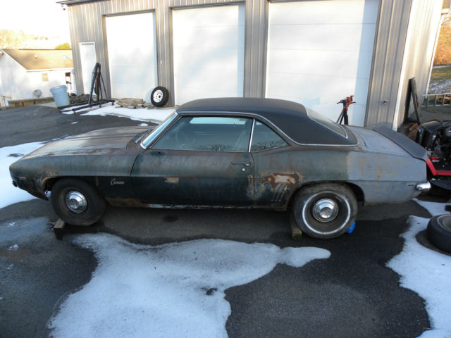 Iâm selling a nice basically unmolested 69 X44 Camaro with very low documented miles on the Certificate of Title and Odometer. The title shows 44755 miles when it was purchased in April of 1977 and the actual miles are 79255 on the odometer. This is a very nice and solid car that retains its entire factory original body panels with paint. This Camaro is in great shape for being a 45+ year old vehicle. The underside; floors, rockers, frame rails are rust / rot free and in perfect condition. The metal dash at the base of the windshield / cowl, a common rust area is rusted and needs to be replaced. The bottoms of the fenders also have rust that needs to be patched. Both the bottoms of the doors are in good shape with no rut. I have pictures showing the rust free bottom of the doors. The car has a non-original 350ci engine that is locked / seized, due to sitting many years. The transmission is an automatic floor shift with console. The car is an original Fathom Green car with black standard interior according to the trim tag, which is also pictured. This Camaro is an unrestored car that has never been totally disassembled nor does it really require it for a nice driver quality build. The car retains all of its original sheet metal, which says a lot about the condition of the car. The interior is also in good condition and original for being 45+ years old. The only item that needs to be replaced or repaired is the headliner, rug, and dash pad and passenger side door panel. The original FM/AM radio is also missing. The dash carrier is also in excellent shape with the radio opening not modified. This Camaro has power steering, console and Factory Air Conditioning. Iâm sure that I may have missed something but I have honestly and accurately described this Camaro. This car has no warranty written or implied. A non-refundable $500.00 deposit is required within 24 hours after the auction ends. Any questions please contact me; Joe at (302) 753-1311. I reserve the right to end the auction at any time and for any reason. The vehicle is available for inspection prior to the auction ending and is encouraged, so you can actually see what you are bidding on. Good Luck and the winner wonât be disappointed!