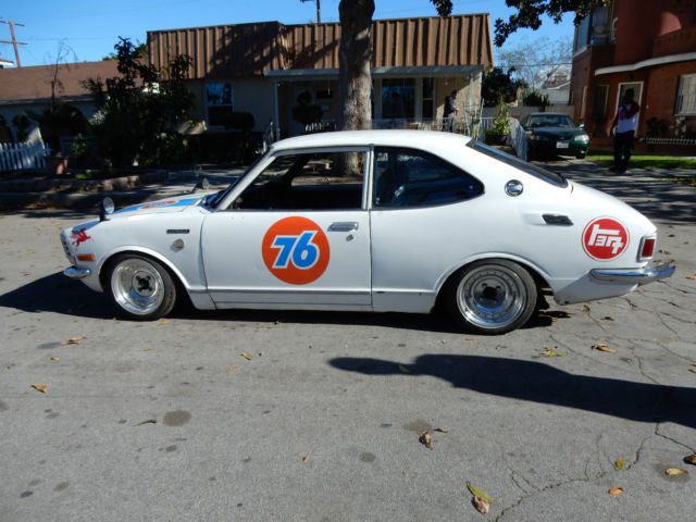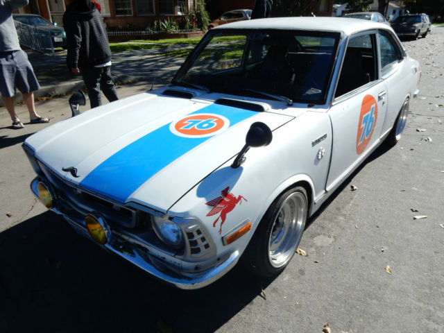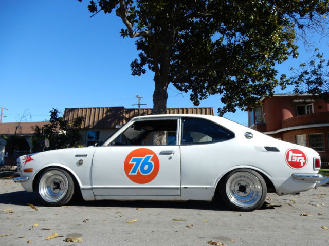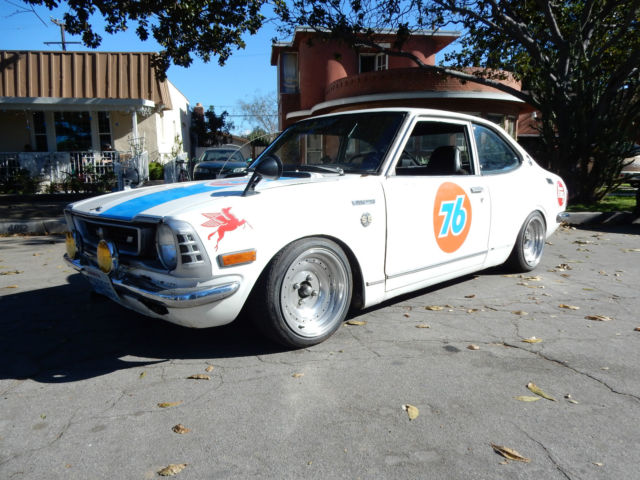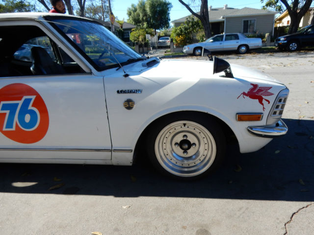 I Drive it exactly how you see it, add gas and go. Title in hand. Located in Long Beach California 90805 , Feel free to look at it in person. 1974 Toyota Corolla "TE27" Or "Mango" 2 Door Coupe , Badged as an S5, will not promise that it is but has all signs of it. 2TC Hemi 4 cylinder with 5 Speed Manual transmission , wood grain cluster with the mileage of 87 507 On the gauge cluster. Aftermarket 14" wheels with polish lip, Lowerd, Camber plates, lowering blocks/flipped springs in rear. Early version bumpers, Decals all over. Fender mirrors. Custom headliner. Rough around the edges, does have scrapes or dents or scratches or dings or rust showing. It's an old car. See pictures so no confusion occurs. Crack on window. Lights work to drive at night (passenger head light doesn't) Throttle linkage could use a different set up, not to fond of it. Runs and drives great other wise. Reason for sale, Looking for a turbo diesel truck. Nothing more. Buyer is responsible for shipping. I can assist you all the way to your front door. No problem. Clean and clear California title on hand. Vin number TE27121990 VIN (Vehicle Identification Number): TE27121990 Year: 1974 Number of Cylinders: 4 Make: Toyota Transmission: Manual Model:corolla Body Type: Coupe Trim: TE27 Warranty: Vehicle does NOT have an existing warranty Engine: 1.6L 2TC Vehicle Title: Clear Drive Type: Rear wheel drive Fuel Type: Gasoline Mileage: 87,507 For Sale By: Dealer Exterior Color: White Disability Equipped: No Interior Color: Black
