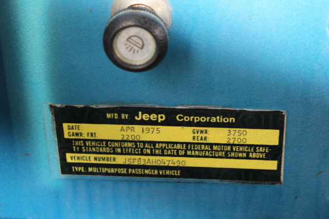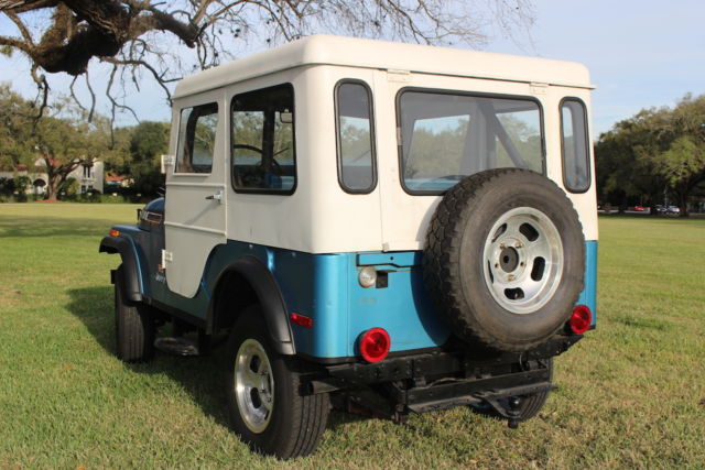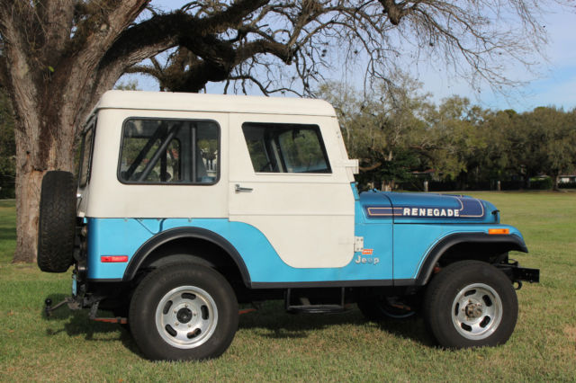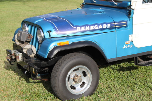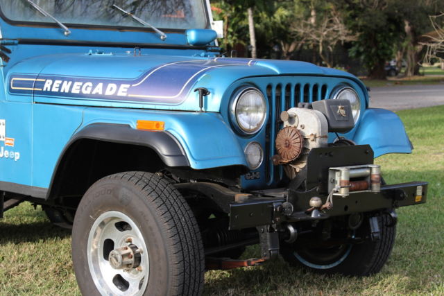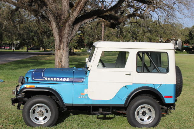 1975 JEEP CJ 5 LEVI EDITION (RARE) 304 V8 Features: Levi Edition 304 V8 Three Speed Manual Transmission Two owner vehicle No rust, no rot Original paint, beautiful patina. Original engine Original keys Original Levi Blue sun visors Original Levi Blue dash pad Interior has been redone to include seats, full roll bar added to original, rust proof floor coating in the interior to match the Levi Blue. Original correct period top. (Has been coated and is in excellent shape.) Original Renegade Rims Heavy Duty Frame (stock) Warn winch (stock) Trailer hitch package (stock) Black undercoating has been professionally applied New tires All electrics work as they should Transmission shifts smoothly Original Owner Added: Aluminum radiator Power steering CRT Performance distributor New gas tank Potential Issues: May need a tune up. Choke on carburetor may need adjustment/fixing (once it warms up it is fine/ no issues) Interior gauge lights are finicky. Two side mirrors needed One windshield wiper knob needed History: Purchased from original owner approximately one year ago who lived in Georgia. Now the vehicle resides in Miami, FL. Purchased new in April 1975 by original owner from Andy's AMC-Jeep in Marietta, GA. Subsequently purchased by myself in May of 2014. Paperwork Included: Original Window/ Sales Sticker Original Vehicle Invoice Original Dealer Pre-Delivery Invoice Original Levi Magazine Ad Original Owner's Manual Original Warn Locking Hubs manual Handwritten Record Log from original owner which includes: mileage, work done to car, dates/speedometer readings etc. *You can keep this as it is and use it or it is an excellent candidate for a full restoration. *I attempted to describe this vehicle as best I could. I not only welcome, but encourage a pre-purchase inspection. This vehicle is sold as is with no warranty implied or expressed. For additional questions, please contact me. *Additional photos available upon request. *I reserve the right to end the auction at any time.