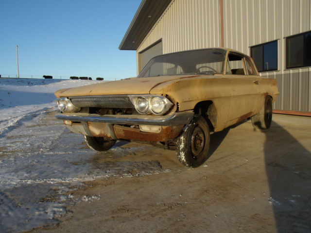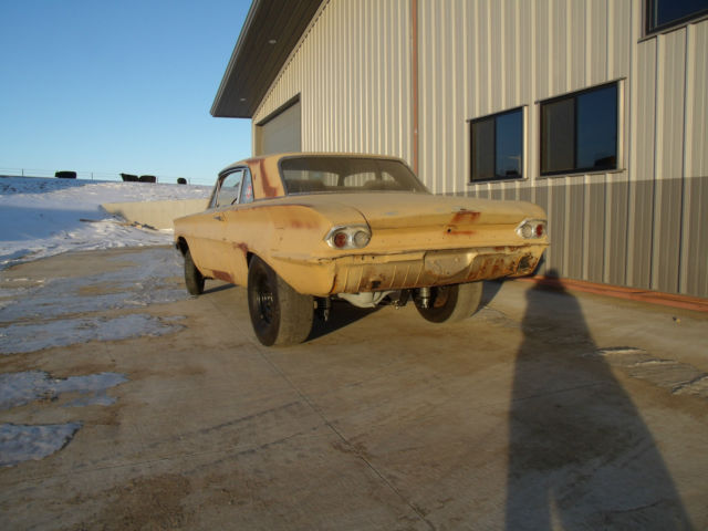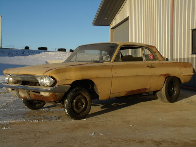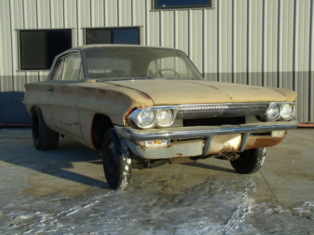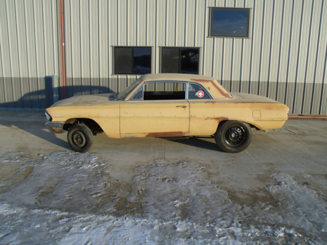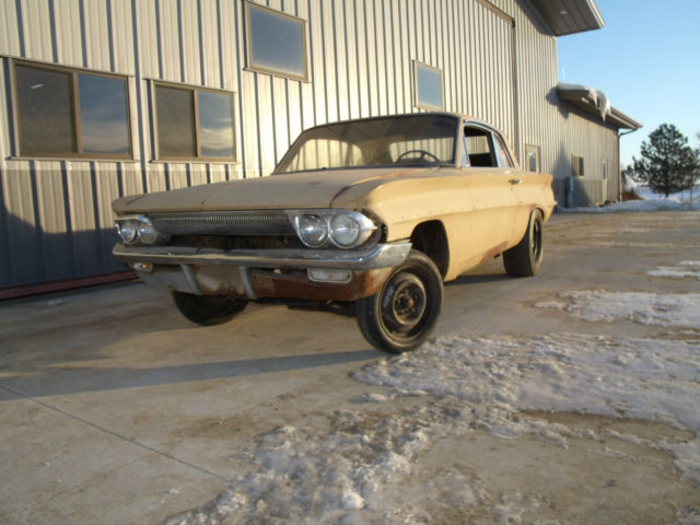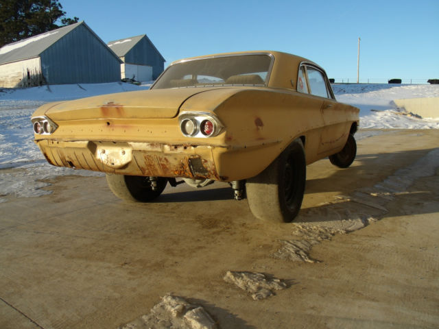 1961 Oldsmobile F-85 drag car or gasser. This is a great little winter project! Put in whatever engine/transmission combo you want and be ready for the drag strip and cruise nights this spring! Good: New front ball joints New rebuilt Ford 9 inch rear end with 3.55 gears and Quick Performance Axles QA1 adjustable coilovers on rear with progressive rate springs RCI fuel cell included Mickey Thomson 28x10.5x15 tires Competition Engineering ladder bar rear suspension 4-wheel disc brakes Clear title Left to complete: Install engine/tranny/driveshaft (not included) Complete fuel system Transmission tunnel Wiring Bodywork if desired Bad: The car has some pretty rusty spots as you can tell by the pictures, and at some point, somebody covered it up with bondo. If you don't mind the patina look than it won't bother you. If you would restore the car, you may want to have a donor car. The floorpan and firewall were cut out to set in a small block chevy and th350 transmission. The plan was to just put in a full flat sheetmetal floor and remove the rusty factory floorboards. The front tires are just donuts that were used to move it around the shop. I also have all the original trim to complete the exterior. The car is available for local pick up only, unless the buyer arranges shipping on their own expense. You may come and look at the car if you desire. Please contact me for more info or if you have any questions. Thanks for looking! On Jan-31-15 at 14:12:52 PST, seller added the following information: Reserve is set at $2000 or email me with offers. Thanks for looking!