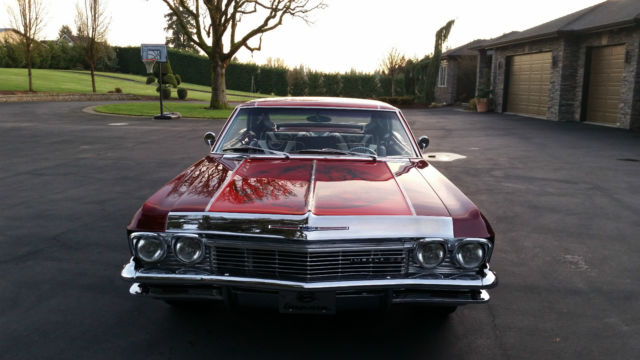 1965 Impala SS Super Sport Coupe. Spare no expense custom restorod. High-end engine components and a Chromed out 327 Chevy V8 with headers and tuned exhaust. Edelbrock Performer Intake & Carb. SSBC full disk brake system front and rear. Power Windows, Door Locks, Huge Be Cool dual fans and large Be Cool aluminum radiator to cruse in any summer weather conditions comfortably. Air conditioning system blows cold and also features a custom control panel finished in polished aluminum. New Coy's custom wheels and tires, Eibach lowering springs, KYB drop shocks, Kinetik power source, really everything is new or has been replaced at one time. Unbelievable audio system that sounds awesome no matter what your music preference is (county, rock, rap or 50's) Air brushed graphics on the sides of the car along with the hood and trunk are professionally done. The interior of this car is also very nicely done with Impala SS logos in a two tone white and burgundy with custom accents such has the gauge cluster that was crafted specifically for this car. The center console and interior panels were fabricated in fiberglass and have a rich high gloss paint finished to match the exterior. This Impala SS coupe would be a show stopper at any cruse in and is an excellent example of a custom restorod that's ready to roll. . Honest seller so please feel free to contact me with any questions at all or leave me a phone number if you would prefer for me to call you back. I'm limited to 24 pics on eBay but I have many more I can send (email) to all serious buyers. The amount of time and money invested in this car is incredible and t he car is priced very right!
