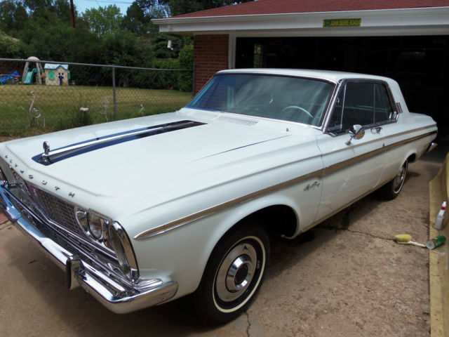 1963 Plymouth Sport Fury 2 dr. htp. This is an excellent car to complete the restoration. The interior panels, seats, console, new padded dash is complete but needs new upholstery & carpet installed. The engine is a 413 cu. in. taken from a 1964 Chrysler 300 which registered 360 h.p. with single exhaust and one 4-barrel carburator. This engine is in very good condition and will produce up to 400 to 425 h.p. with dual exhausts, dual 4-barrel carburators with the intake manifold that I have plus a higher lift cam. At the present time the engine has a 10:1 compression ratio. I have the camshaft information from COMP cams for the build-up to get this kind of h.p. with-out to much expense. The engine ran fine prior to removing the heads for inspection and cleaning. The transmission is a pushbutton Torque-Flight that is original to the 413 cu. in. engine and also worked fine prior to removal. The rear end is a Posi which was derived from a Plymouth Road Runner. The outside Body Work was completed with the highest quality materials. All moldings were removed, straightened and polished prior to being installed. The console is like new and is original along with the bucket seats and also the rears. This is a "all matching" car with the exception of the engine, transmission and rear end. The dash guages including speedometer has all been refurbished to like new condition. The radio also has been cleaned and serviced accordingly. This is a "special pet" of mine but realize that all good things must past due to age and other interests. This car was a totally "rust free" vehicle. No new metal was ever added as the floor pans and trunk pan were all in prefect conditon. No dents nor scrapes were anywhere prior to painting, therefore this car is free of bondo. I also have the rear spoiler which I had purchased for it which is black and will be included in the sale. I have everything to complete the interior including all stainless steel and pot metal molding which were also cleaned and polished to perfection. All Lenses and emblems are included. Some of these were purchased new as needed. The steering wheel has also been refurbished in white and black and it's beautiful. This is a very solid, straight and desireable 1963 Plymouth Sport Fury.
