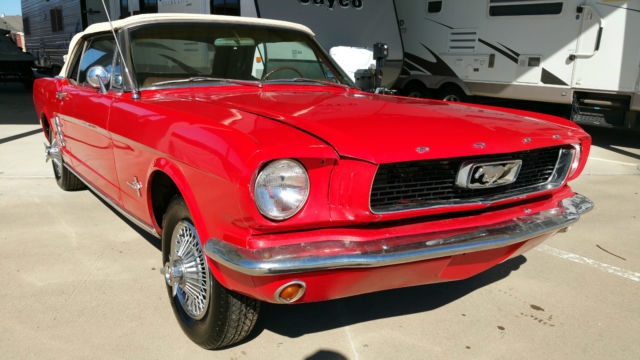 1966 Mustang Convertible! What a Great Car, So Iconic! LARGE PHOTOS BELOW DESCRIPTION Recently been discovered in a small Barn in the outskirts of southern Oklahoma! pretty straight body, and good paint, keep it like it is and drive, or fully restore Originally a T-code straight 6cyl car..... Converted to a 289 V8 with automatic transmission Interior is all original per the interior and trim code A/C car, but compressor is missing Nice top! only 2 spots one small tear about 2" and a gouge about 1" near the rear window convertible top motor is very strong, top is up or down in less than 10 seconds Nice wire wheels, with Brand new tires. All structure of the car, torque boxes, Trunk, etc looks solid! There is floor board rust and a few bubbles on the door and quarters but no rot thru. on the pass side it looks as if it was lightly hit but fixed, no frame damage evident. I have not attempted to start the car or dig into it. The motor does turn over well and is not seized. I did not even check if there is fuel in the car, or try to find the reason that might be causing it to not fire up. It ran and drove before it was parked about a year ago. so I can not guarantee mechanics, but seems like a great project for someone! I will be out of town until the 10th, I will still be able to return emails or calls. This is an As-is Sale, over 40 year old un-restored car, you should assume there will be other issues that I have not noticed myself. I will ship Worldwide! you must arrange your own shipping, I will make sure the vehicle gets loaded Serious parties only please. I have sold many cars to happy clients all around the world so buy in confidence. Thank you! \