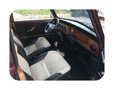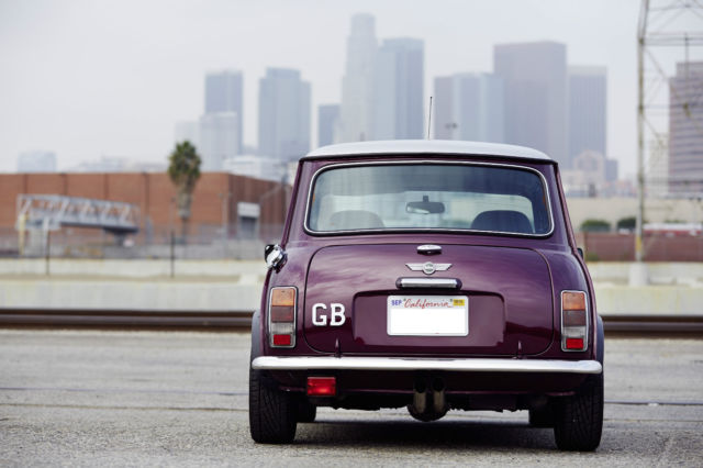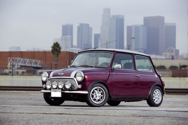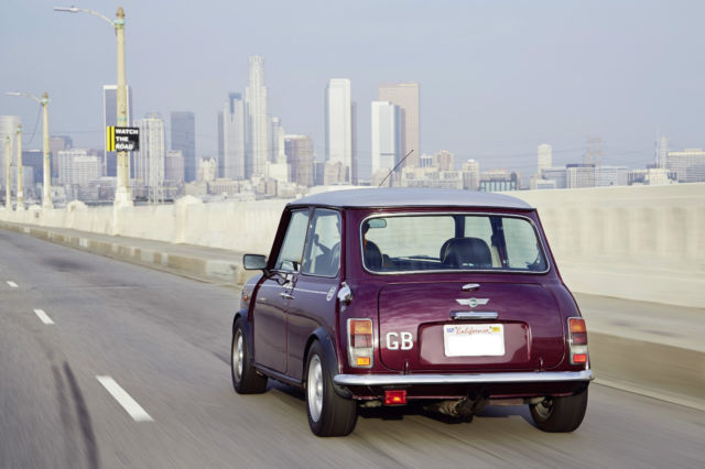 Its 1275cc engine (the largest from the factory) has the 90-hp (at flywheel) engine upgrades so itâs very quick â but still docile enough for everyday use. A stock 1275cc puts out ~65-70 hp, so the extra (claimed) 20-25hp makes a huge difference â particularly considering classic Minis weigh only 1,500 lbs! This very clean Cooper-style Mini looks very sharp â the hard-to-find (purplish-burgundy) color is called Amaranth Metallic and is accented with a contrasting silver roof and twin silver rearview mirrors and bonnet stripes. Factory left-hand-drive (LHD) steering. Has 33k pampered miles. Inside and out, itâs in like-new condition. Paint is excellent and interior is unmarked. Always garaged. Zero rust â and never had any. No evidence of any prior collision damage. Fully freeway-capable; cruises at 70-plus mph â without even breathing hard! Exterior: Upgrades include 12â³ Ultralight (8-spoke) alloys w/ Yokohama rubber, twin silver mirrors, alloy flip-top fuel filler, quad driving lights in front, roof-mount antenna, and fully adjustable suspension with Spax shocks. Interior: Leather upholstery w/ flecked cloth inserts is in like-new condition. New wood dash and white-face gauges. Like virtually all classic Minis, there is no air conditioning, but has twin fresh-air dash vents. For additional ventilation, the side rear windows pop outward. Three-point retractable seat belts in front and rear. Rear window defogger. Alloy door furniture. Remote control immobilizer and alarm system. Under bonnet: As part of the 90-hp engine upgrades, thereâs an aftermarket, low-restriction performance Pipercross air filter and Maniflow exhaust system and alloy rocker cover. For more reliability, has breakerless electronic ignition. Manual transmission is the four-speed, four-synchro, ârod shiftâ (stronger, smoother shifting) model. California titled since 2002 and currently registered. If you care for such things, it reportedly gets 35 mpg⦠On Jan-26-15 at 13:43:39 PST, seller added the following information: Please note that THIS MINI IS NOT: - an import from Japan - single point injection (SPI) version - fitted with air conditioning