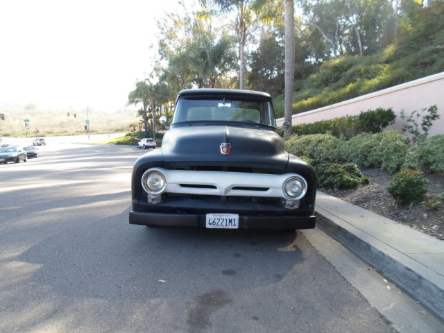 1956 Ford F-100 Short Bed V8 Auto P/S P/B Cruiser Here is a Nice 56. You already know that the 56 is the most popular of ALL F-100s. Most of the work has been done to make this an Old School Restomod. Power is from Y-Block hipo 390 with Edelbrock carb and intake. Mild cam. Headers run thru long Glass Pack mufflers and sounds Terrific. C6 Auto transmission with Locar Long Reach Shifter. Rearend is 8.8 with Disc Brakes. Front end is 56 Ford with Mono Leaf Springs for that Kool Stance. Power Steering and Power Disc Brakes front and rear. Chrome Wheels with Baby Moon caps. Tires are 235 75 15 rear and 225 60 15 front with Plenty of tread. Body is very Straight with Solid floors, doors, cab corners, roof rails , running boards, etc. Would take very little to get ready for paint booth. Bed Wood in good condition with 15 gallon tank. Interior is clean with Bucket Seats . One Piece Power Windows. All glass is like New. There are probably things I forgot, so please ask questions.... I will get you answers. Buyers can also call me between 8 am to 8 pm California time @ 858-361-8629. As with all old cars and trucks, no warranty expressed or implied. Actual mileage unknown. Clear Clean California title with California plates expires 1/31/15. All numbers Match Vin tag and Frame stamp so should be Easy to Import. I Sell WORLDWIDE and will assist your shipper. If necessary please check with wife Before bidding. I reserve the right to end the auction early for a Buyer. Bid or Buy it Now......................... Thank you
