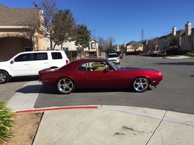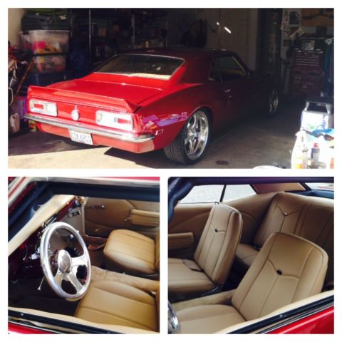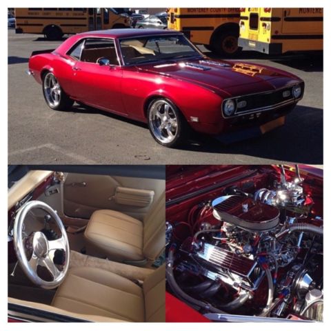 PLEASE BE SERIOUS AND INSPECTIONS ARE WELCOME OF CAR AND I HAVE PROOF OF ABOUT 50K IN RECIETS OF BUILD BY PROFESSIONAL SHOP. IT WILL GO WITH CAR.. ALSO IS A ORIGINAL V8 CAR NOW SOME PEOPLE SAY ITS A SS BUT NOT SURE SINCE 68 THEY DID NOT STAMP THEM YOU ARE WELCOME TO DO YOUR RESEARCH. LOOK UP VIN NUMBER.. ANY QUESTIONS CALL ME OR TEXT 831-297-2834 CAMARO 68 FRAME OFF RESTORATION EVERTHING IS NEW NUT AND BOLT.. 350 MOTOR WITH CAM AND HEADERS AND AUTOMATIC TRANNY. CUSTOM PAINT ALL TO BARE METAL NO RUST CALIFORNIA CAR. DISC BRAKES POWER STEERING AND POWER BRAKES ALL CUSTOM INTERIOR AND ALL NEW HOTCHKISS SUSPENSION FRONT AND BACK.. INTRO WHEELS 18 IN FRONT AND 20 REAR, ALSO IS MINI TUBBED AND REAR END NARROWED AND GAS TANK TOO. UNDERCARIGE IS SOME CHROME AND PAINTED. ALSO BILLET HINGES AND TRUNK AND TAILIGHTS AND HAS LED LIGHTS ON REAR.. HAS MATCHING STEERING WHEEL THAT GO WITH INTRO PENTIA WHEELS. TO MUCH TO LIST. THANK YOU AND PLEASE DONT WASTE MY TIME AND I WONT WASTE YOURS..ANY QUESTIONS CALL ME 831-297-2834..