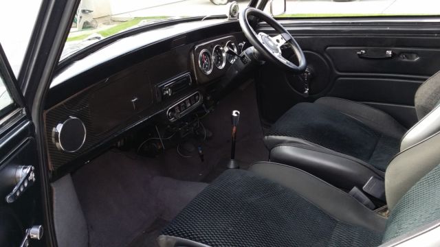 1971 RIGHT HAND DRIVE MINI COOPER. IMPORTED FROM ENGLAND. RARE IN THE US! CAUTION....YOU WILL GET A LOT OF LOOKS AND ATTENTION IN THIS SUPER COOL AND UNIQUE LITTLE CAR! ENGINE: Swiftune engine bored to 1380cc pushing 100hp (originally 75 hp)! Really fun to drive! Stage 3 Head fitted, Standard rockers, SW5 Road Cam Shaft and a standard Duplex timing set. Motor has 26k miles. About $9000 worth of work done to it. You can verify with Swift Tunes engine code and call/email them to verify. Engine code # 2500696 1880 ST . Runs smooth! Rach was reset when engine got put in. TRANSMISSION: Rebuilt with engine. New Sports Clutch added. Shifts smooth! EXHAUST: Nice $800 dollar exhaust system BRAKES: Upgraded front brakes to Disc Brakes. System recently flushed and serviced TIRES / Wheels: About 85% life left on them. Nice After market performance 10 inch wheels ELECTRICAL/GAUGES: All gauges, lights and electrical works! INTERIOR: Interior is a 8.5/10. New Recargo seats front and back. Trunk in nice condition with spare tire MUSIC: Nice Pioneer sound system with Pioneer deck with AUX (for ipod/phone) and 6 speakers BODY / PAINT: 8/10 cleans up really nice! Nice paint shine! Has a little bit of rust. A 10/10 car to me is show quality. This car has some minor imperfections but its a car that is meant to be driven not just sit at car shows! Chrome is really nice GLASS/MIRRORS: All in perfect shape and windows roll up just fine. Recently a full service was done (oil, belt, coolant, plugs, wires, distributor cap, rotor, filter, etc...). Car runs excellent and easily gets 25-30 mpg! We bought this car not too long ago for a suprise birthday gift for my mom since she really likes old and new mini coopers. But to our suprise she spontaneously bought herself a brand new one which she says "fits her better"......so now we are selling this one. Call or text for any questions (661)809-0053