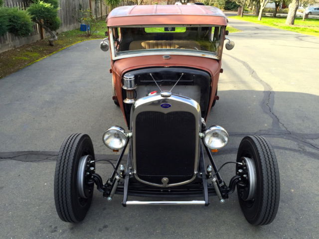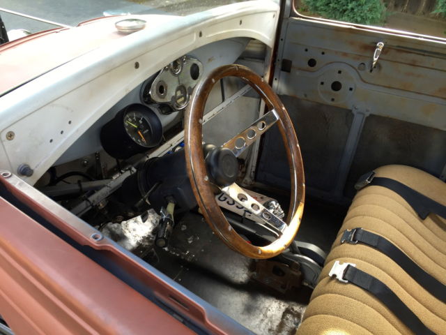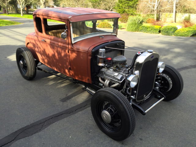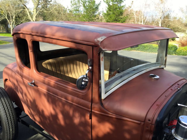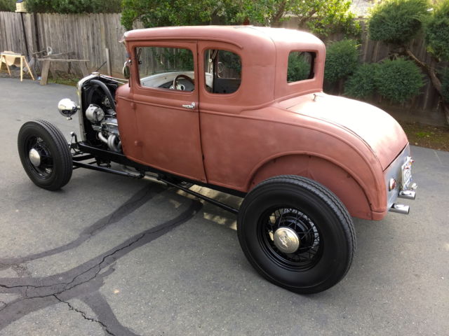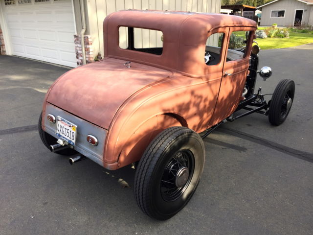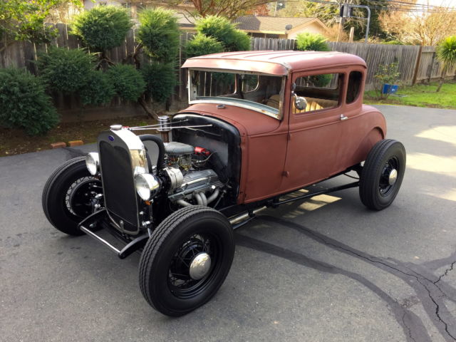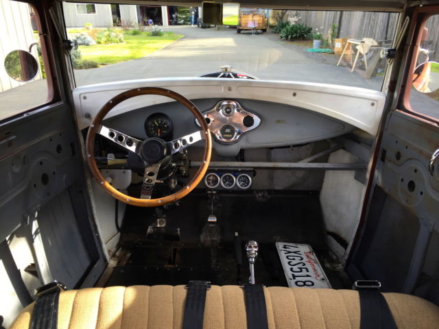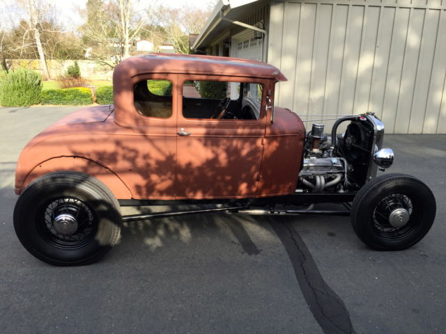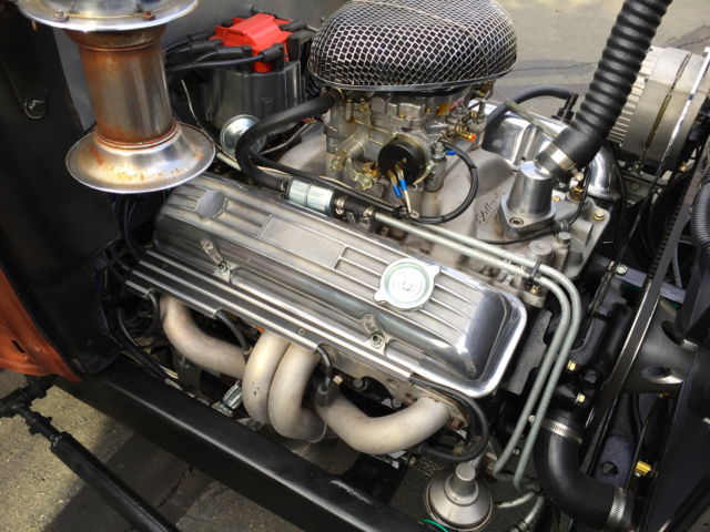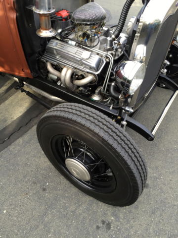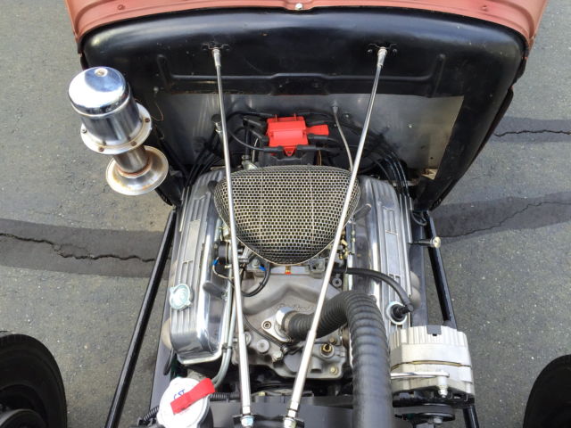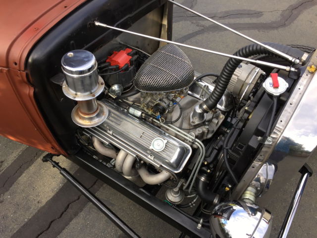 Car was built to be a driver that will go anywhere and has been everywhere. Fun car and that is very reliable and has great look. Coupe fires up first start and drives comfortably down the road with newer steering box,shocks and coil overs. Drives straight and stops straight without pulling either way. Steel floors inside and in trunk. All steel body Steel floors and steel deck lid Body chopped 3 inches Filled roof Comes with all metal brackets for wood in roof Built sbc 350 with mild cam, HEI, dual exhaust, finned valve covers, edlebrock 650 carb, new Walker Radiator, electric fan Turbo 350 with Shift kit Stock model a frame boxed and stepped up in rear 4 inch dropped axle Front end solid with newer king pins and no speed wobble / wheel hop 40 Ford front brakes Newer brake lines Split bones up front Bones in rear 10 bolt posi rear end with 311 gears Painless wiring kit Vega style cross steering box Has tilt column and comes with 2 different 40's style columns Gauges all work, lights work Uses stock gas tank with gas gauge that still works 10 bolt in rear with coil overs Nice rims and tires that have traditional look Coker Radial tires with 500 miles on them Stock Model A grill Comes with removable stock Model A hood Has nice bench seat in it and comes with stock seat tray Also comes with complete set of uncut garnish moldings California title and currently registered Not interested in trades