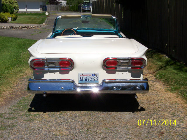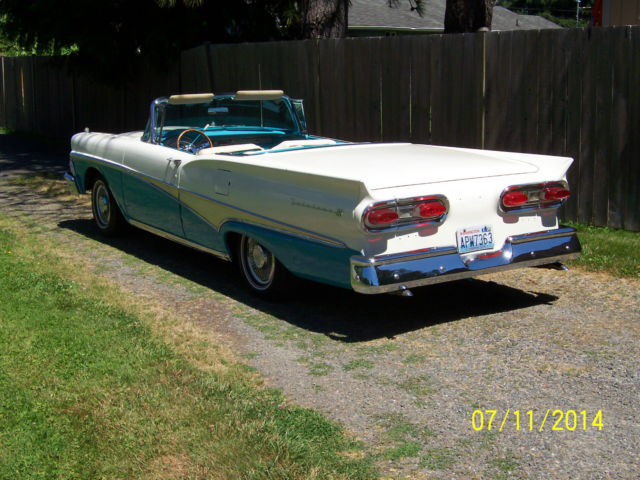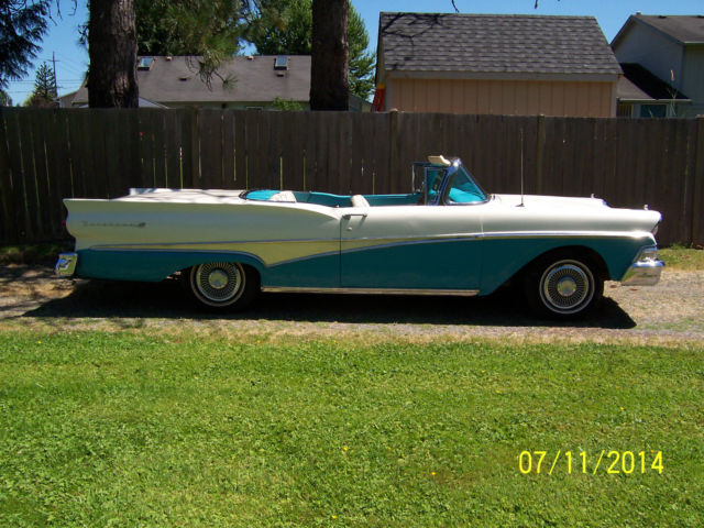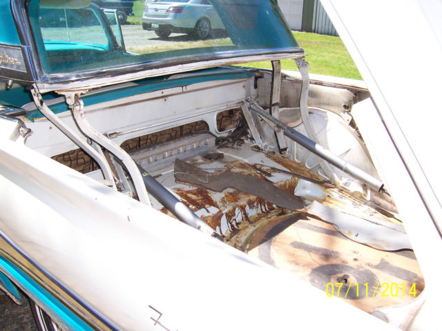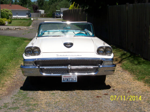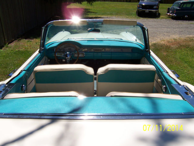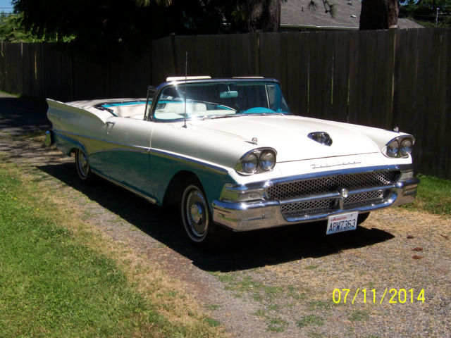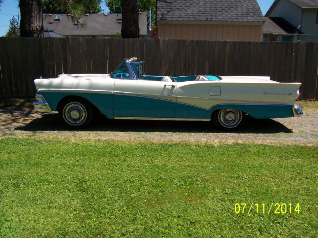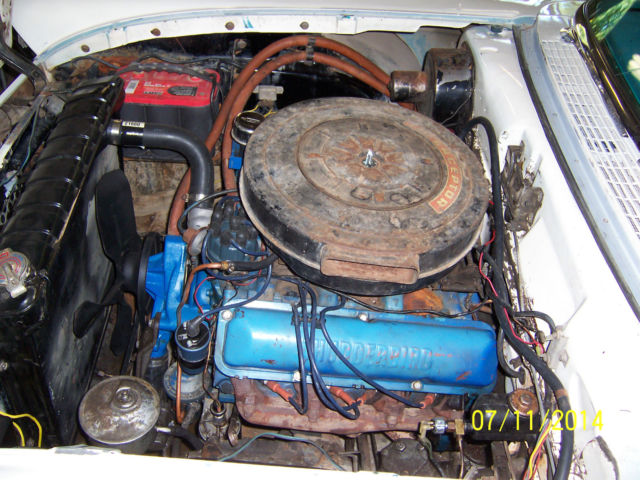 1958 Ford Skyliner, retractable - fully functional top, PS, PB, 390, cruise-o-matic. Use as is or take to next level, great car for a full restoration. Was stored unused from 1989 - 2013. '64 390 " Thunderbird Special", which runs good, with '63 Cruise-o-matic - origianl 332 engine and transmission replaced long ago. Interior is original and mostly solid (front driver area of seat badly worn). The carpet is gone. I have an original steering wheel with horn ring (good shape) , which needs restored and painted. Passenger door glass is broken (still there) and needs replaced. NEW INTERIOR KIT and TRUNK KIT included - Lebaron Bonney kit ordered and will be included with purchase. Minimal rust in the rear floor wells needing repair, minor dents in driver door and quarter panel see picture. Original wheels, and hub caps with low mile older tires, no weather cracking. New parts: upper and lower radiator hoses, antifreeze -- after flushing the cooling system, fan belts, water pump & thermostat Oil & filter, fuel filter plugs, points, condenser, cap, rotor and coil replacement Holley carburetor Exhaust manifold gaskets ( no broken bolts in the heads) Transmission filter, gasket and fluid master cylinder, all wheel cylinders and shoes, rear bearings, front inner and outer bearings and seals. Drums turned front emergency brake cable gas tank remove, checked out (clean and solid) and new sending unit installed. . . gauge still not working turn signal flasher, front turn signal lenses and gaskets, and bulbs, new reproduction tail light lenses & gaskets (4) new dual exhaust system from exhaust manifolds back.