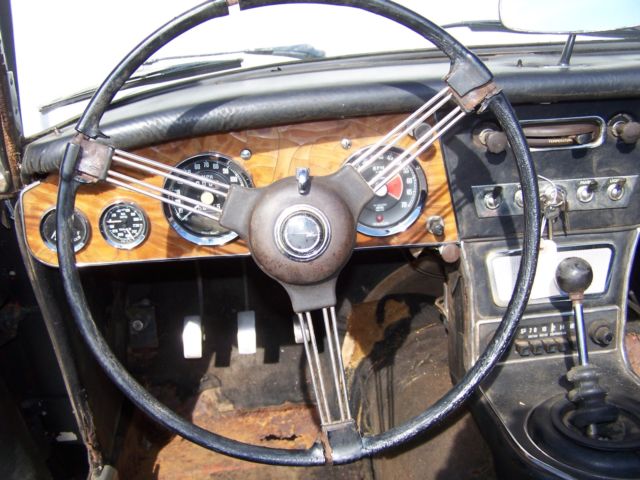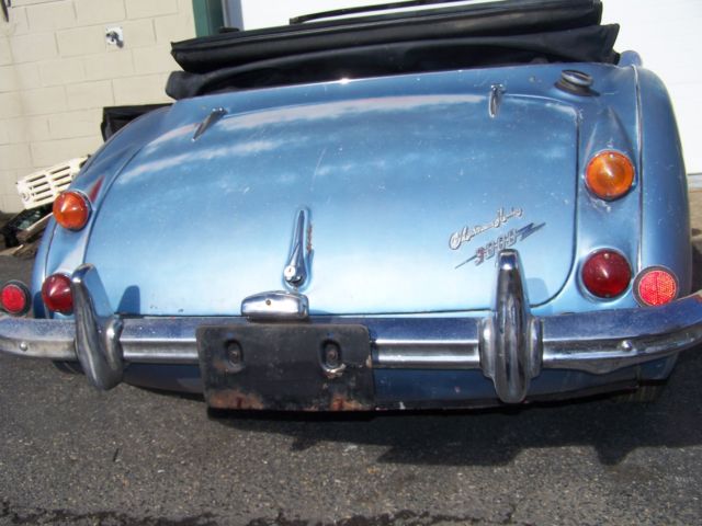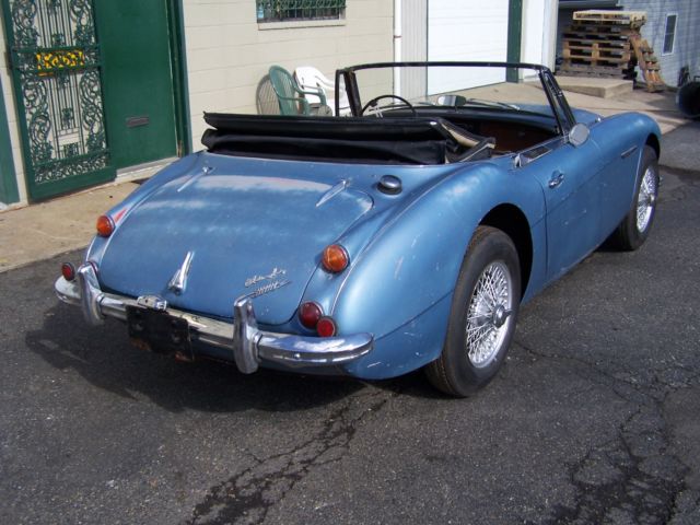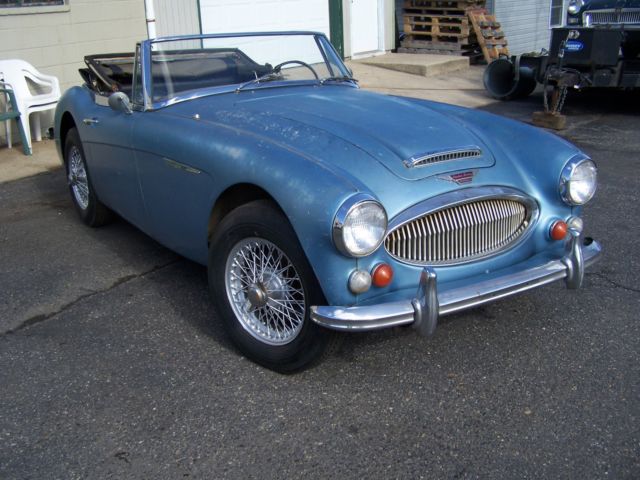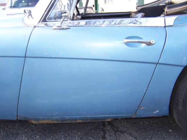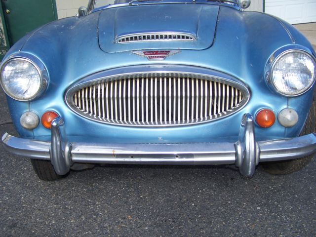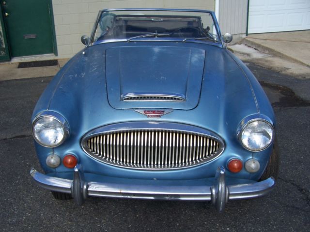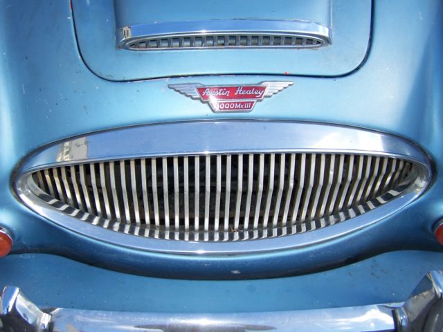 Nice BJ8 for sale. Unmolested southern car with very little rust. Originally a red car with black interior, now painted Healey silver-blue. The paint is poor. This car has never been apart and the body lines are outstanding. The front shroud and grill area are excellent. I see no signs of this car ever having collision damage. There is some rust in both of the footwell sections and some very minor rust in the rear doglegs. There is also some minor rust in the trunk floor. The sills, main floors and outriggers are all solid with only a little rust on the inner sill on the right side. It has the original servo and it has been bypassed. The interior (original black) is certainly restorable with the rear seats and sqaub intact. The car is running and the HD8 carburetors have been rebuilt. It has recently had the gas tank and fuel pump replaced. Both rear wheel cylinders and brake shoes are new. All hydraulic flex lines are new. It has new front brake pads. The brakes and clutch work fine. The gearbox is very good with no noise in 1 st gear. The overdrive is untested. The engine holds very good oil pressure. It has 60 spoke painted wheels with bias ply tires. The convertible top is shot. Odometer shows 60K with the original decal on the glass. If you are looking for a good Austin Healey MKIII to restore, this is the car. Unlike most, this car has never been apart and is a great car to consider for restoration or drive as it is. Vehicle is sold "as is", with no implied warranty. Please call Tim at 310 746 8299. Car is located in Catonsville, Maryland.