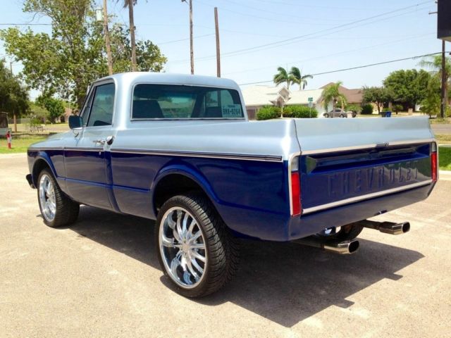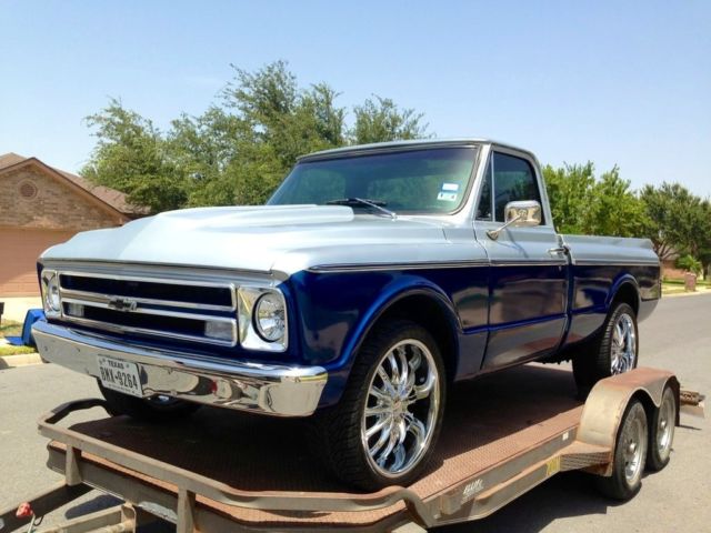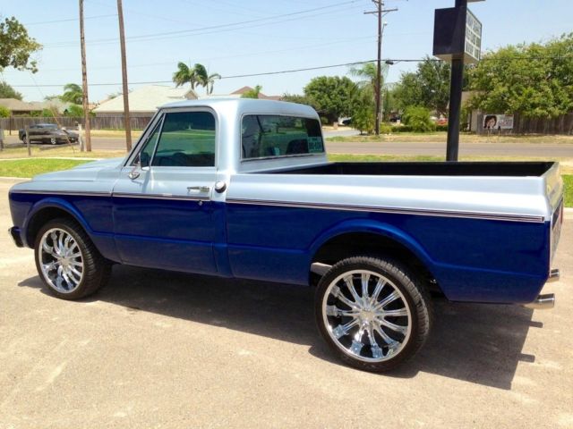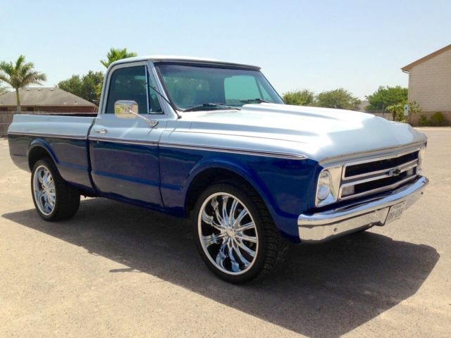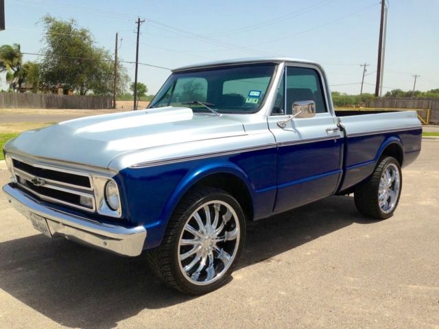 This is truly one of a kind looking 1967 Custom Chevy C-10 Short bed that screams American Truck with all its lines and curves that line up straight it has a 350 motor with holley performance carburetor, headers, brand new full link exhaust, cam, edelbrock intake, and matching valve covers, B&M automatic shifter, B&M converter lock up control, aluminum aftermarket racing radiator, msdignition box, wiring,dual electric fans, custom paint, custom interior, after market new rims and tires, cowl induction hood, custom tailgate has ken wood Cd player, alarm with remote lock...custom steering wheel and couple off other things I'm sure missing! This beauty runs good and strong and comes with a Clean Texas Title that's on hand....,a real head turner! Alot was invested into this baby and always garage and covered...truck sounds solid and rumbles when accelerated...truck exterior and interior are in great shape! This is Great American Muscle Truck can be a daily driver .... This C-10 is not a project it is ready to be shown off and driven... might need little tlc to please someone taste and needs, but as it sits in my opinion its ready to go ...As soon as I hit the road I get thumbs up from and people take pictures of it, thanks to God I'm not in need of money since i do own my own business here in Texas, but everything is forsale, but will go for the right price!!! So there it is.... don't let this one pass you by, if you are looking for a solid and in great condition C-10 Custom truck this one is for you! Please feel free to call or text ask me any questions or concerns regarding corvette at 956-212-5398 anytime! Thanks and God Bless! I will not ship car or release title till money has been removed from PayPal and deposited into my bank! (Car Is Sold As-Is) But bid with confidence! Clean Texas Title Always South Texas Owned as far as Im aware! 3rd Party Welcome Inspect Car before Bidding Have Right To End Auction Since Be Sold Locally! Truck Has A/C Compressor but not componets Heater Works tho! All electrical gauges and headlights,blinkers, etc work at the moment! No Refunds or Exchanges .