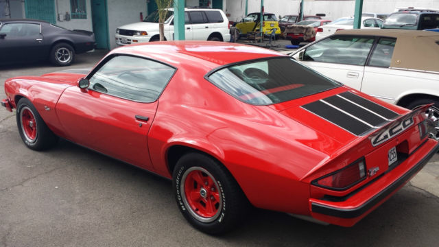 This 1974 Chevrolet Camaro Z28 Coupe has been driven only 3,156 Miles since Undergoing an Extensive Professional Body On Restoration. This is a True Z28 not a clone and comes with a Clean California Title. High Quality Red Paint with Black and White Factory Z28 Striping Redone Red Interior with Bucket Seats and Console Equipped with 350 V8, Automatic Transmission, Factory Air Conditioning, Power Steering, Power Disc Brakes, Original Factory 15" Rally Wheels with Trim Rings. This true American Muscle Car Looks Excellent and Drives Great For more information contact Valley Classic Motors at 818 762 6674. Valley Classic Motors has been in business since 1996. We are a California Licensed and Bonded Car Dealership. Our Reputation and Attention to Excellent Customer Service are most important to us. Here are more details about this vehicle: Trim Level: Z28 Coupe Odometer Reading: 3,156 (Mileage since restoration) VIN# 1Q87T4N246788 Vehicle Category/Style: Muscle/Pony/Performance Chevy Exterior Color(s): Red with Black & White Z28 Factory Striping Restoration History: Restored Condition of Exterior: Excellent with only a few minor flaws from driving Interior Color(s): Red Seat Material: Vinyl This vehicle comes equipped with: Air Conditioning, Alarm, Jensen AM/FM Stereo with CD Player Bucket Seats, Power Brakes, Power Steering, Tinted Glass Condition of Interior: Excellent Engine Details: 350 V-8 (non-matching numbers) with 4BBL Carburetor Transmission Type: Automatic with B&M Shifter Drive Train: Rear-wheel drive Wheels: 15" Factory Rally's with Trim Rings We have done our best to accurately describe this vehicle. Minor details may be missed. We welcome and encourage pre-delivery inspections. It is up to the buyer to see and further inspect the car. This vehicle is subject to its sale before the end of the listing. For CA residents: Sale price does not include tax, license, registration, and doc. fees. Buyer will be responsible for all shipping costs but we will be happy to assist in making shipping arrangements. We can assist in both interstate and international shipping. Acceptable forms of payment can be Bank Wire Transfer, Certified Cashier's Check (once verified), or Cash (in person). PayPal is not acceptable. A Deposit of $1000.00 must be paid within 3 days of agreeing to purchase this vehicle. Deposits are NON-REFUNDABLE unless agreed upon by both seller and buyer (in writing or email) or if the vehicle fails a professional on-site inspection within an agreed upon time frame. Miles posted in this listing may vary slightly due to local test-driving, in transit repairs, or road testing. Vehicles that are older than 10 years and/or have more than 100,000 miles with a five digit ODO will be sold as miles exempt. This is a pre-owned vehicle and is being sold in "As Is" condition.