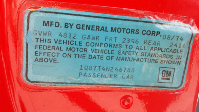 | VIN (Vehicle Identification Number): | 1Q87T4N246788 | Year: | 1974 |