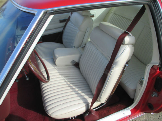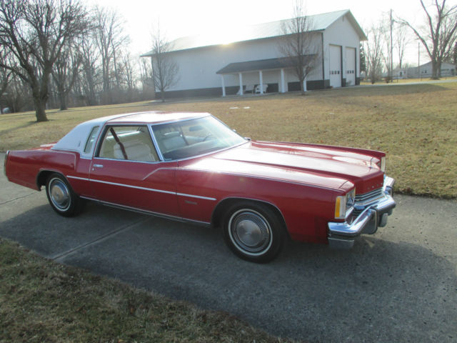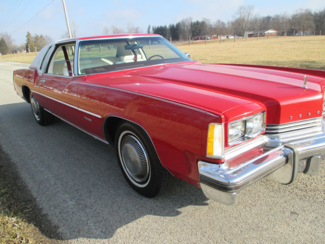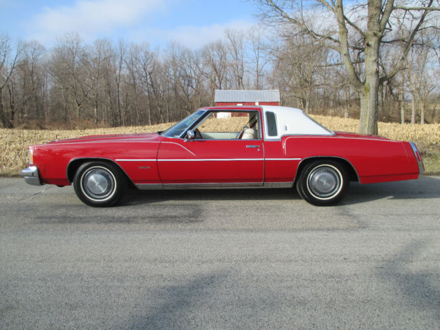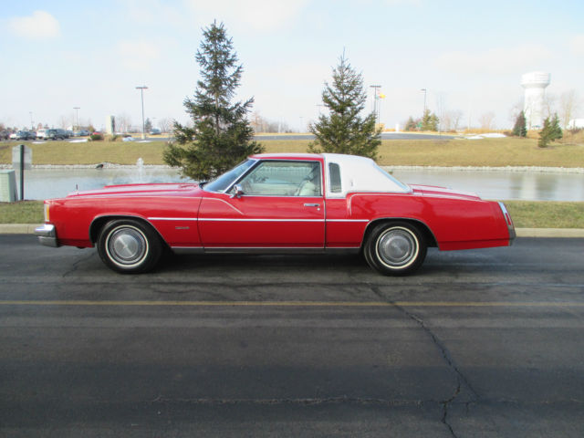 SHOWROOM CONDITION- 1976 OLDSMOBILE TORONADO - 24,337 ACTUAL DOCUMENTED MILES - EVEN STATES ON THE TITLE AS ACTUAL MILES - THIS IS A TRUE GEM !! STORED AWAY AND LIKE A TIME CAPSULE -- THIS CAR LOOKS LIKE IT JUST ROLLED OF THE SHOWROOM FLOOR - STUNNING CAR - A TRUE MUST SEE CAR -- ABSOLUTLY GORGEOUS INSIDE AND OUT -- BEAUTIFUL COLOR COMBINATION RED WITH A HALF WHITE TOP AND WHITE INTERIOR - JUST A STUNNIN CAR -- THE PAINT ON THIS CAR HAS A GREAT SHINE ( SEE PICS ) LIKE LOOKING IN A MIRROR-- AMAZING SHINE, THE INTERIOR IS IN LIKE NEW CONDITION THE SEATS ARE LIKE NEW, THE CARPETS ARE LIKE NEW ( I TOOK A PIC OF THE CARPET ) NO WEAR AT ALL, STILL SMELLS NEW INSIDE, STILL HAS THE ORIGINAL FLOORMATTS -- THE ENGINE COMPARTMENT IS SUPER CLEAN AND LOOKS AMAZING, THE TRUNK IS LIKE IT WAS NEVER USED, THE SPARE TIRE HAS NEVER BEEN OUT, THE UNDERSIDE IS VERY NICE ( SEE PICS ) OVERALL- JUST AMAZING -- THIS CAR STARTS RIGHT UP AND DRIVES LIKE A DREAM- I WOULD NOT HESITATE TO DRIVE IT ANYWHERE, - A PURE PLEASURE TO DRIVE - THIS TORONADO HAS ALL POWER OPTIONS-- LOADED ! REAR WINDOW DEFROST , POWER SEAT, I WILL BE VERY HARD TO FIND ANOTHER BEAUTY LIKE THIS ONE -- ESPECIALLY THIS CLOR COMBINATION- NOT TO MENTION THIS CONDITION !! AND BEST OF ALL FREE DELIVERY RIGHT TO YOU ! THIS CAR HAS A GREAT BUY IT NOW PRICE - IT USUALLY TAKES ANYWHERE FROM 3-14 DAYS TO RECIEVE THE CAR AFTER PAYMENT IS MADE, THE PAPERWORK WILL BE RAN THROUGH A DEALER, THIS CAR IS AVAILABLE TO VIEW AND INSPECT AT ANYTIME BEFORE PURCHASE, EVEN BRING YOUR MECHANIC - I ENCOURAGE IT - THIS IS ONE OF A KIND CAR - LIKE ALL OTHER CLASSIC CARS THIS CAR IS SOLD AS IS - NO WARRANTY ON NOTHING - THIS IS THE ONE TO OWN - A GREAT INVESTMENT ! YOU WILL LOVE THS CAR .