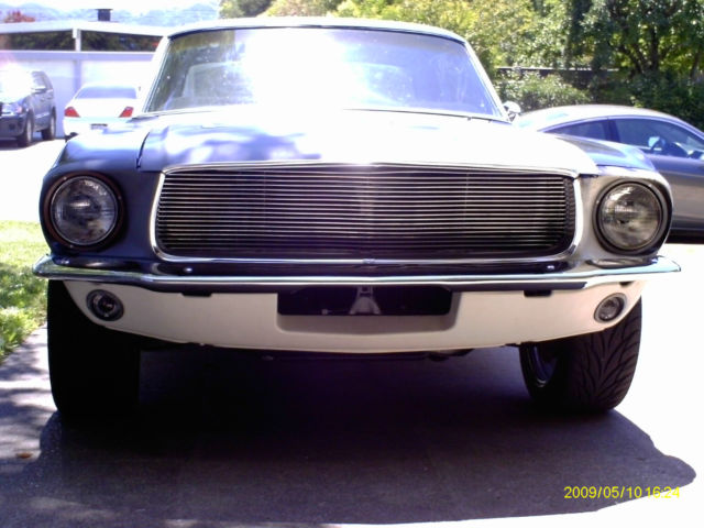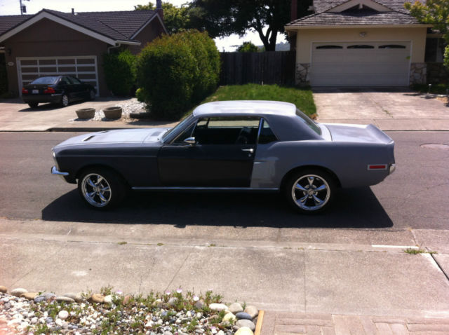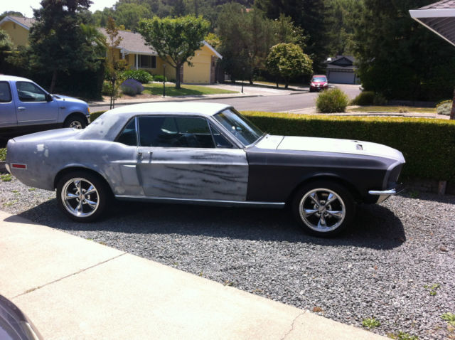 1968 Mustang Coupe 289 or 302 told by last owner that it is a 302 but I am not sure. V8 Runs strong and sounds great with performance headers and flowmaster exhaust 17 inch wheels New power brakes New disk brakes in front New drum brakes in back Interior looks great new head liner. Automatic with new B&M shifter Left and right side Restomod ground effects side rails plus rear apron extensions. New Fiberglass side scoops New water pump, thermostat, over-sized radiator, radiator hoses, overflow tank, improved fan and pulleys, and new fan guard. The body has a new driver side front fender, new passenger side front fender, New hood with sequential LED turn lights and new hood springs. New driver side door with new bullet style side mirror with all new hinges on both doors. New fiberglass trunk, with left and right fiberglass wings. Tail section is a New Shelby style tail light with LED sequential tail lights, new rear lower panel new rear bumper,new front and rear shocks and new GT gas cap.. Front has a new billet grill new lower scoop. New front bumper.The car does not appear to have rust in the common problem classic mustang areas like floor boards, trunk, cowl area. The car does not appear to have been in an accident. Frame looks straight and drives straight. Title is clean and clear with No salvage warnings.