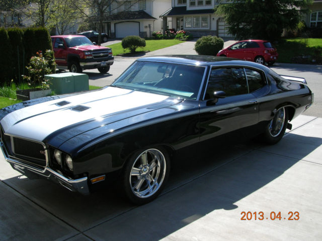 This is one killer ride, over $100,000 invested and built right! 1970 Buick GSX Tribute car This Prostreet / Protour car has it all, new front to back and never raced. Body is all new arrow straight steel, stretched rear 1/4's to fit 33" inch tall slicks, Fiber glass hood and Mile deep Black paint. 455CI ALL Buick V8 Dyno'd at 686+HP + 150HP nitrous system and just under 800fp of torque. Engine is well over $12,000 alone! Turbo 400 Transmission with reverse valve body with a lockout launch control (trans brake), and line lock on the shifter, Electronic fuel and water systems, 4 Core radiator with electric cooling fan, 3 inch exhaust front to back with 4 inline mufflers and electric power dumps for wide open exhaust, Programmable electronic ignition, over sized balanced drive shaft, narrowed Dana 60 rear end 456 spooled gears with strange axles, 20 gallon fuel cell with sending unit, Powder coated frame/chassis/fenderwells and cage in silver or Black. This car is Back halved with a 4 Link ladder bar suspension, a Full 10 point cage (cert. 8.5sec or slower), Front dropped spindles, Over sized 4 wheel disc brake system all powder coated, Completely sound proofed [Dynamat] roof/doors/floor, Complete 1000 Watt Alpine sound system with 6-6.5 Speakers and a 10 inch sub stuffed between the tubs, Custom designed interior with LED lighting accents, console, door panels, solid headliner and sale panels are just stunning, Alarm system, Remote locks, In-dash tach, Auto Meter gauges x 6/Fuel level/Fuel pressure/Oil pressureTrans temp/Nitrous pressure, Racing seats by Scat but you woudn't know it because they have been customized too with full 5 point race belts, the list goes on and on. Chrome and glass perfect, custom wheels are polished and built for this car by Budnik Wheels, Rears are 20x16 inch and Fronts 18x8. Rear radials tires are as big as they come, 31" tall with almost 20" of rubber touching the ground each side on the rear end, these monsters fit perfectly. This car also comes with a full set of racing tires on five star rims, pizza cutters up front and the big groved 33" tall slicks for the back that have only been used for set up and build are road legal. Some extra parts and pcs that would go with as well. Langley, Canada