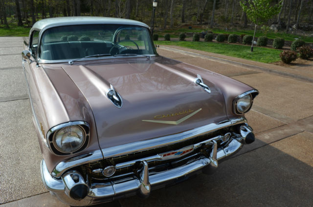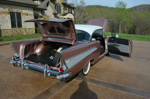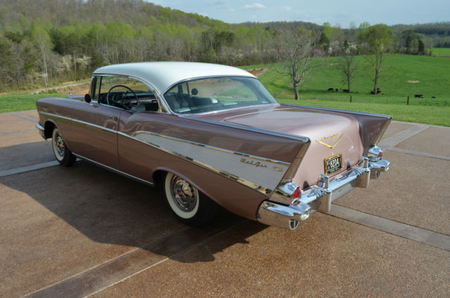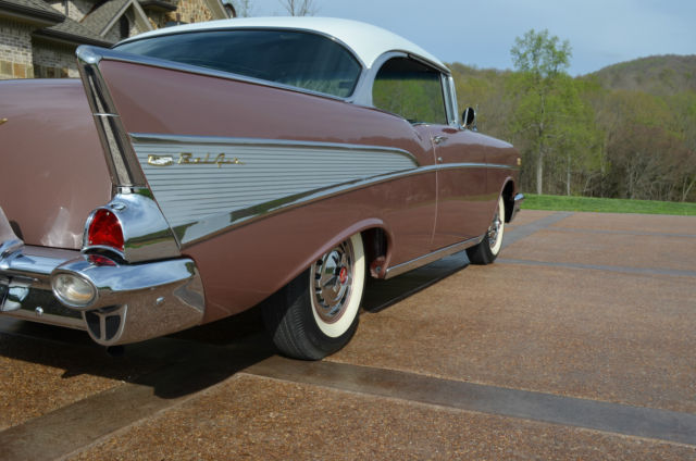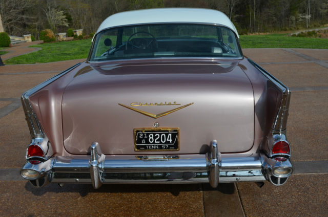 This Classic 1957 Bel Air Hardtop is simply stunning. Nut/bolt frame off restoration completed 105 miles ago. This may change slightly to keep things working, it must be driven a little. Take this one to the shows this spring to capture all the awards. 283 CID / 220 HP 4BL Power Pack Engine 2 Speed Powerglide Automatic Transmission Sikkens base coat clear coat in Dusk Pearl and India Ivory Texas car w/ original sales receipt and license receipt Comes with 24' Enclosed Pace America Trailer Very few classic cars are as special as a 1957 Chevrolet Bel Air 2-Door Hardtop. They are the undisputed king of collector cars and always make for a great investment. There is just something about driving a nice 57. All of the trim, chrome, and glass are very nice. Power comes from a smooth running 283 V-8. The 4 barrel carburetor and dual exhaust makes for a better driving experience. These are big cars and more power is essential. The automatic transmission shifts very smoothly. The interior is very nice with the correct fabrics accented with the correct inserts. It looks very original without a bunch of unnecessary modifications. It is very tasteful with the dusk pearl exterior. The trunk looks great with a correct mat and full size spare tire. The chassis is clean and was refurbished. It rides on reproduction wide white wall tires with correct wheel covers. If you have ever wanted an original 57 that looks like it did back in the day, this is the car for you. Buyer is responsible for all shipping arrangements and costs. Seller will assist as much as possible, but responsibility rests with buyer. All shipping transactions are between buyer and transport service. Local pickup available in Zip Code 38580.