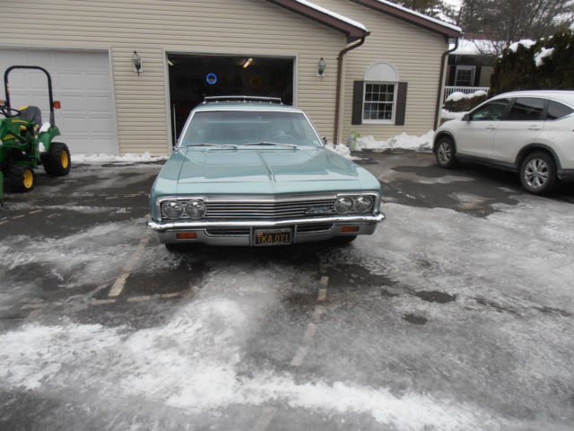 For sale is my 1966 Wagon this vehicle is an original black plate California car. I purchased this wagon from a gentleman in Maryland in 2009. I drove the vehicle for a year and then did a mild restoration. This vehicle was very healthy to start, NO ROT, NO RUST!!! Interior Third row seat was added. All new seat covers (Cars 1 Inc.) New door handles New arm rests New stereo system New carpet Rear interior panels recovered Exterior Complete repaint PPG base coat, clear coat (in original color) All the exterior trim has been straightened, polished, or replaced. All exterior emblems have been replaced, etc. Engine/Drive Train The engine is a big block not original 454 (1974) although the vehicle is an original big block car. All other parts are 396 cylinder head, exhaust manifold, etc. As you can see in the pictures it still has the smog pump in working condition The engine and transmission has less than 2000 miles on it since being rebuilt Ignition is HEI Suspension has air ride on all 4 corners (ridtech) level one with large tank and two compressors Cooling System new three row Griffin Radiator, cooled with both mechanical and electric fan Wheels/ Tires Wheels are Billet Specialty Dyno 17x8 in the front; 18x9 in the rear Tires are Nexen, fronts are 24545R17; rears are 25545R18 Over all the only thing this vehicle needs is an under dash AC unit (vintage air). Vehicle runs and drives 100%. Drive anywhere. Text, e-mail, or call with any questions. Please no tire kickers!!! Will consider a reasonable offer or late model trade. 570-262-1964