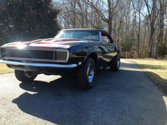 1968 Camaro Convertible with original matching # 327 fresh rebuilt .030 over. This is a beautiful driver quality car that would be at home at any local show, almost everything has been replaced, car is solid and straight. Clear Maryland title in my name in hand ready to transfer. Fresh 327 .030 over 4 speed manual trans 3:36 posi rear. New floor pans New Full quarter panels New outer wheel houses New Tail Panel New Door New fenders with extensions New inner fenders New core support New heater core New lower front valence New cowl hood New gas tank New sending unit and fuel line All New brake lines New rear leaf springs New rear brakes including hardware, cylinders, shoes and drums New KYB Gas Adjust shocks on all four corners All New Emergency Brake cables New Clutch, pressure plate and throw out bearing New Carpet New Convertible top New door panels New seat covers New dash pad New alternator New starter New water pump New fuel pump New wiper motor New Edelbrock Performer Intake New Edelbrock Carb New Edelbrock Chrome Accesories New Summit Dual Exhaust system New Competition Engineering J-Bolt Traction Bars New Complete RS Grill and Headlight assemblies New Weatherstrip Front end has been rebuilt including new bushings, ball joints, tie rods, springs and shocks Power Steering Power Disc Brakes Car has its original trunk pan in great shape You are welcome to come see the car in person, just send a message to set up an appointment. Ask any and all questions prior to bidding.