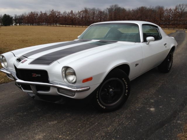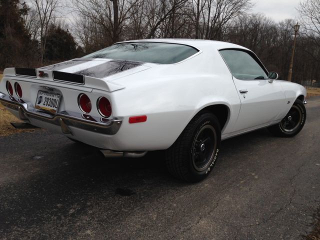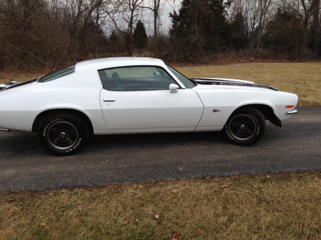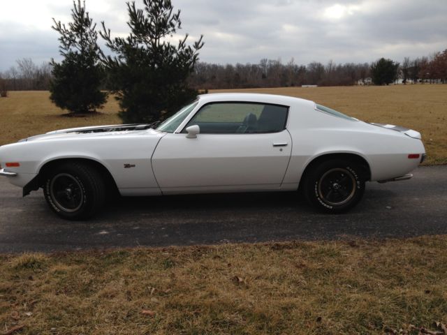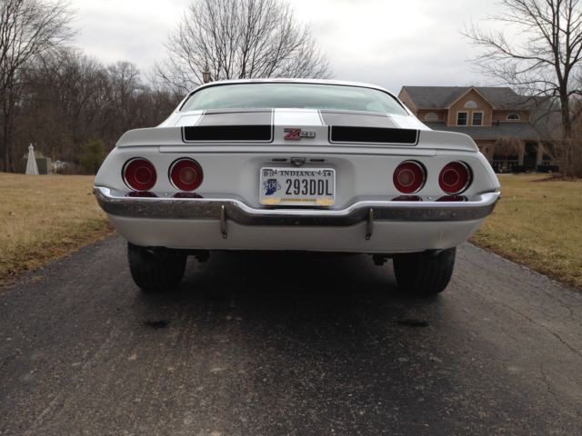 UP FOR AUCTION IS A MY 1971 Z28, THIS CAR WAS NUT AND BOLT FRAME OFF RESTORED (SUB-FRAME) 4 YEARS AGO. THE CAR HAD BEEN IN STORAGE SINCE 1979 AND HAS NEVER HAD ANY RUST! THE FLOOR PANS AND TRUNK PAN ARE ORIGINAL ALONG WITH MOST OF THE SHEET METAL. MOST OF THE INTERIOR IS ORIGINAL. ALL OF THE RUBBER HAS BEEN REPLACED. THE GLASS HAS BEEN REPLACED WITH GM TINTED RESTORATION GLASS.THE PAINT IS PPG BASE CLEAR WITH THE STRIPING UNDER CLEAR.THE ODOMETER READS 16,728 AND I BELIEVE THAT TO BE CORRECT BUT I HAVE NO DOCUMENTATION. THE VIN IS 12487IN537368. THE ENGINE IS 11N53733 IS CURIOUSLY 30 OFF FROM A PERFECT MATCH BUT ALL THE EXPERTS SAY THAT IT LOOKS LIKE A FACTORY PUNCH ERROR, AS STATS WOULD INDICATE. THE TRIM TAG IS ST7112487NOR Z28.19 THE HEADS ARE THE CORRECT 973487 CASTING. THE INTAKE IS THE CORRECT 3959594 CASTING. THE TRANSMISSION IS THE MUNCIE M21 CLOSE RATIO AS IT SHOULD BE. THE REAR IS ALSO A BORN WITH 10 BOLT 373 GEARED POSI UNIT. THE ENGINE HAS HAD ABOUT 500 MILES ON IT SINCE TOTALLY REBUILT WITH THE BEST MONEY COULD BUY, COMPRESSION WAS RAISED TO 9-1/2 TO 1. THE CLUTCH IS A CENTER FORCE WITH A NEW FLYWHEEL AND RELATED HARDWARE. THE SHIFTER IS THE FACTORY HURST. I AM POSTING A VIDEO AS SOON AS IT UPLOADS PLEASE WATCH IF YOUR INTERESTED IN THE CAR! CONSIDERABLE EFFORT WAS PUT FORTH TO KEEP THIS CAR AS FACTORY AS POSSIBLE INCLUDING THE PROPER RESTRICTIVE Z28 EXHAUST SYSTEM BUT THE CAR STILL RUNS EXTREMELY WELL! THE NEGATIVES.... THE HOOD NEEDS ADJUSTED, THE GAP IS NOT EQUAL SIDE TO SIDE. THE TACH STOPPED WORKING LAST FALL. THE UPPER VALANCE PANEL IS A ROUGHER TEXTURE LIKE GRAVEL GUARD ONE OF THE STRIPES ON THE VALANCE PANEL IS BUFF BURNT. THERE ARE A COUPLE OF SMALL CHIPS ON THE DOORS THAT HAVE BEEN TOUCHED UP. THE CLOCK WORKS PERIODICALLY. (TYPICAL).