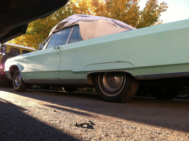 This car is as found except for $2500 worth of work to get to be a daily driver - new battery, carburetor, brake cylinders/lines, plug wires, oil change, etc...Sorry about lack of picks due to bad weather - will add a link mid-auction with more pictures on photo bucket. 383 2 barrel. Original carb included with sale. High quality cover included. Original dirt and grime include. Good tires. Southwestern car. Only rust above fender skirts - bubbles appearing. Dash has cracks due to our southwestern sunshine. Solid floors and truck Roof serviceable but needs lower rear glass re-stitched in place or replace roof cover. Interior does not appear to be original material but in excellent condition - some sort of black velour material. Just needs cleaning - dusty. Paint is sort of turquoise original color is more of a metallic light green which can be seen in engine compartment. The cars is now a reliable daily driver needing cosmetics and eventually new shock absorbers as the dampening seems weak. When I found the car it was parked since 2006 under a carport. Original spare and jack are in rust free trunk. Includes original shop manual. Look at my feedback and bid with confidence. I have sold many cars locally and overseas. I don't buy junk and do not want to misrepresent anything. I can assist on a local level with shipping cars and can get a car to a port for shipping overseas but will not deal with exportation or related paperwork. That being said I have sold many cars to europe over the years...even New Zealand and Australia. This is th e4th large Mopar of the era I have sold which includes 2 New Yorkers and a 300 - all happy customers. In any case, those looking for a big Mopar with mininal work required should consider this car....she is big and pretty and roars.